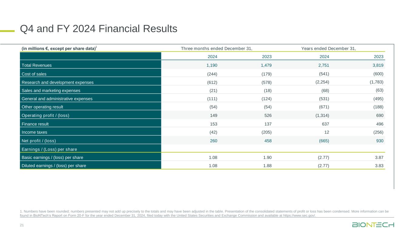 BioNTech Announces Fourth Quarter and Full Year 2024 Financial Results and Corporate Update