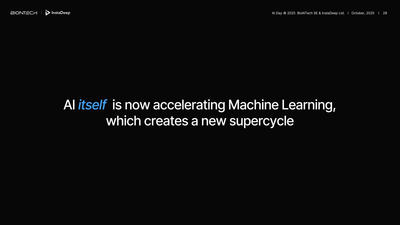 AI itself is now accelerating Machine Learning, which creates a new supercycle AI Day © 2025 BioNTech SE & InstaDeep Ltd. I October, 2025 I 28