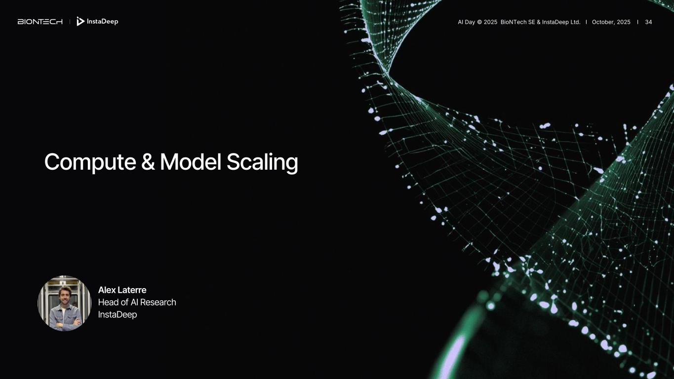 Alex Laterre Head of AI Research InstaDeep Compute & Model Scaling AI Day © 2025 BioNTech SE & InstaDeep Ltd. I October, 2025 I 34
