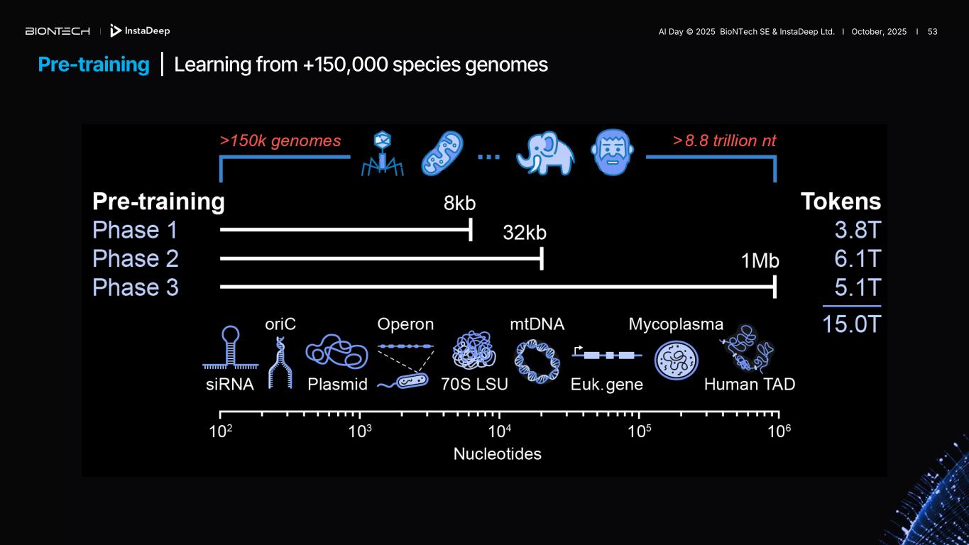 Pre-training | Learning from +150,000 species genomes AI Day © 2025 BioNTech SE & InstaDeep Ltd. I October, 2025 I 53