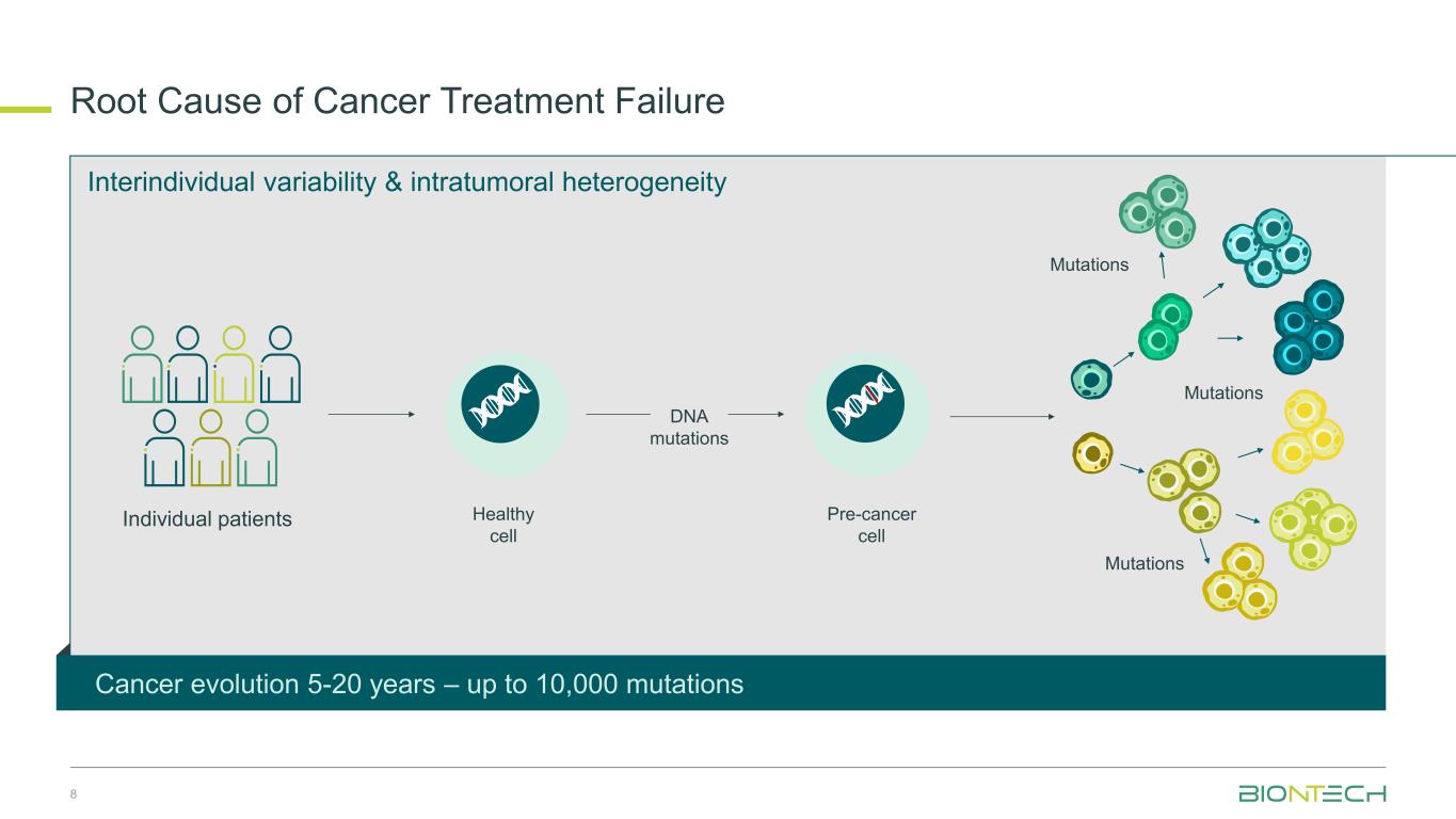 7 BioNTech – Disruptive Tech-Bio Company with Pioneering Technologies Developed Through Full AI Integration Multiplatform oncology company Infectious diseases pipeline COVID-19 vaccine global impact Leader in integrated AI capabilities In-house manufacturing 16 >20Clinical programs Ongoing Phase 2 or 3 trials 7 Clinical programs in high unmet need indications 5 Billion doses distributed 4 Platforms including individualized mRNA and bispecific antibodies