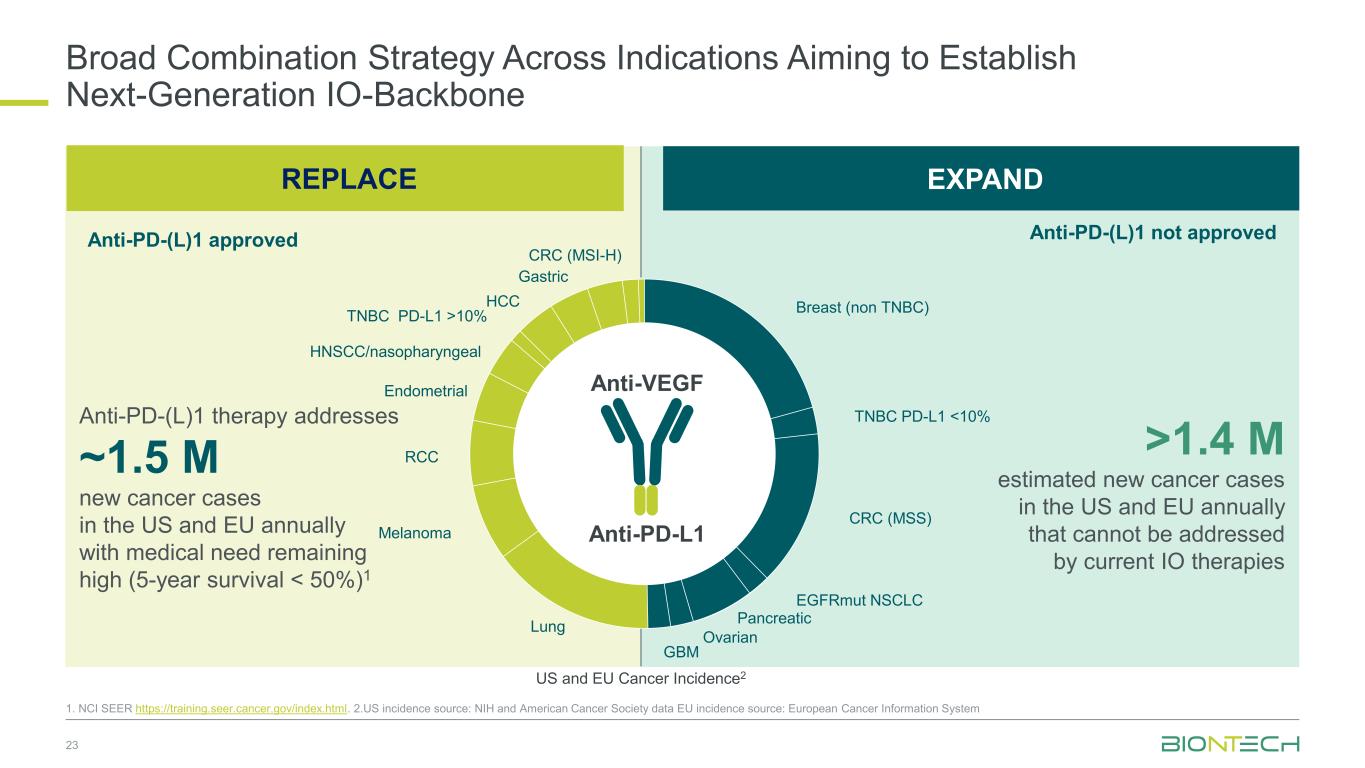 Broad Combination Strategy Across Indications Aiming to Establish Next-Generation IO-Backbone 23 1. NCI SEER https://training.seer.cancer.gov/index.html. 2.US incidence source: NIH and American Cancer Society data EU incidence source: European Cancer Information System Anti-PD-L1 Anti-VEGF Anti-PD-(L)1 therapy addresses ~1.5 M new cancer cases in the US and EU annually with medical need remaining high (5-year survival < 50%)1 >1.4 M estimated new cancer cases in the US and EU annually that cannot be addressed by current IO therapies EXPAND US and EU Cancer Incidence2 Breast (non TNBC) TNBC PD-L1 <10% CRC (MSS) EGFRmut NSCLC Pancreatic Ovarian GBM Lung Melanoma RCC Endometrial HNSCC/nasopharyngeal TNBC PD-L1 >10% HCC Gastric CRC (MSI-H) REPLACE Anti-PD-(L)1 approved Anti-PD-(L)1 not approved