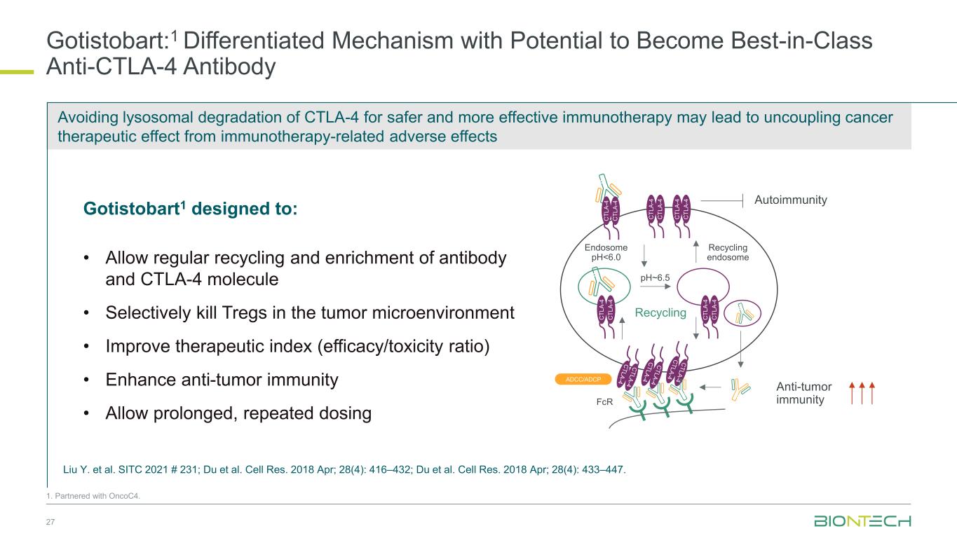 26 The Novel Concept: Selective Depletion of Tregs in the TME Prevailing View: CTLA-4 Blockade Antitumor response intrinsically linked to concomitant autoimmunity, constraining the therapeutic window Opportunity for better therapeutic index by tumor selectivity Yang Liu, Pan Zheng et al British Medical Journal, 2018 Anti-CTLA4 as a Target for Cancer Immunotherapy
