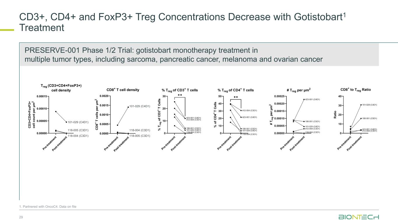 CD3+, CD4+ and FoxP3+ Treg Concentrations Decrease with Gotistobart1 Treatment 29 P re -t re at m en t P ost -t re at m en t 0.00000 0.00005 0.00010 0.00015 Treg (CD3+CD4+FoxP3+) cell density C D 3 + C D 4 + F o x P 3 + c e ll c o u n t p e r μ m 2 101-029 (C4D1) 118-004 (C3D1) 118-005 (C3D1) P re -t re at m en t P ost -t re at m en t 0.0000 0.0005 0.0010 0.0015 0.0020 CD8+ T cell density C D 8 + T c e ll s p e r μ m 2 101-029 (C4D1) 118-004 (C3D1) 118-005 (C3D1) 1. Partnered with OncoC4. Data on file PRESERVE-001 Phase 1/2 Trial: gotistobart monotherapy treatment in multiple tumor types, including sarcoma, pancreatic cancer, melanoma and ovarian cancer