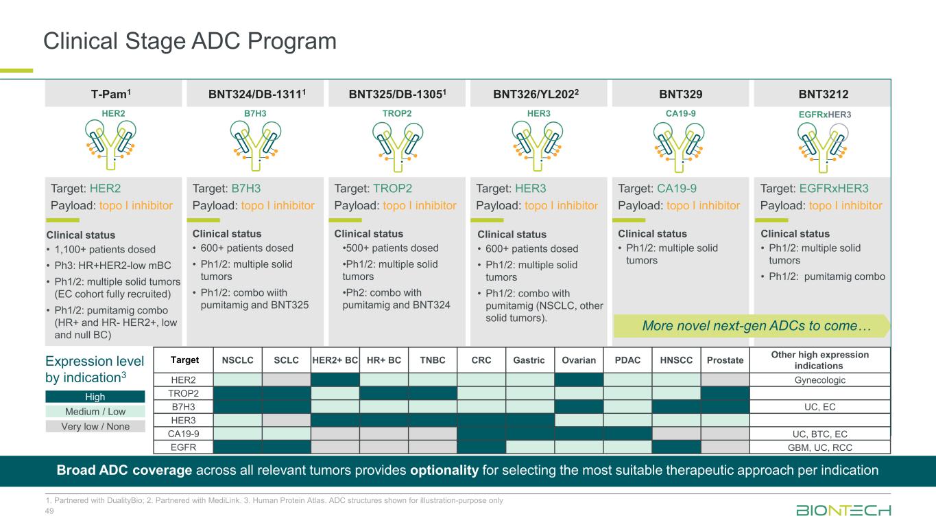 ElevateEstablish SCLC 1L Ph3 (Global) 2L Ph3 (China) 1L/2L Ph2 (Global) NSCLC 1L Ph2/3 (Global) 2L Ph2 (Global) 2L EGFRmut Ph2 (China) IIT neoadjuvant (China) TNBC 1L Ph3 trial (Global) 1L Ph3 (China) Pumitamig:Executing a Parallel Three-Wave Strategy to Build a Proprietary IO Franchise 48 Partnered with 1. Bristol Myers Squibb. Expand Combining with our ADCs targeting • HER2 • TROP2 • B7H3 Exploring potential synergies with our IO agents • EpCam x 4-1BB • TIGIT x PVRIG • mRNA cancer immunotherapy Registrational-Intent 1L Gastric Ph2/3 (Global) 1L CRC Ph2/3 (Global) Signal-Seeking 1L PDAC Ph2 (Global) 1L PDAC Ph2 (China) 1L GBM Ph2 (Global) 1L GBM Ph2 (China) 1L CRC Ph2 (China) 1L HCC Ph2 (China) 1L MPM Ph2 (China) 1L NEN Ph2 (China) HNSCC, RCC, CC, PROC, EC, Melanoma Ph1/2 (China) • HER3 • EGFR x HER3 • Novel targets Foundational Registrations Registrational Trials with Pumitamig1 Ongoing in 3 High-Impact Tumors Broad Pan-Tumor Applicability With Standard-of-Care Chemotherapy 12+ Studies Exploring Pumitamig1 in 10+ New Indications Potential New Standards of Care 10+ Novel-Novel Combinations