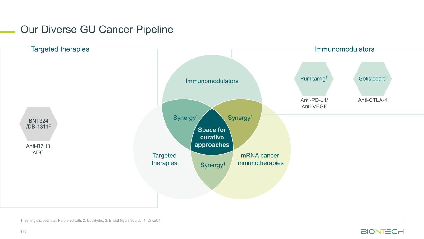 Anti-PD-L1/ Anti-VEGF Pumitamig3 Gotistobart4 Anti-CTLA-4 Immunomodulators Our Diverse GU Cancer Pipeline 140 1. Synergistic potential; Partnered with: 2. DualityBio; 3. Bristol Myers Squibb; 4. OncoC4. Targeted therapies Immunomodulators Space for curative approaches Synergy1 Targeted therapies mRNA cancer immunotherapies Synergy1Synergy1 BNT324 /DB-13112 Anti-B7H3 ADC