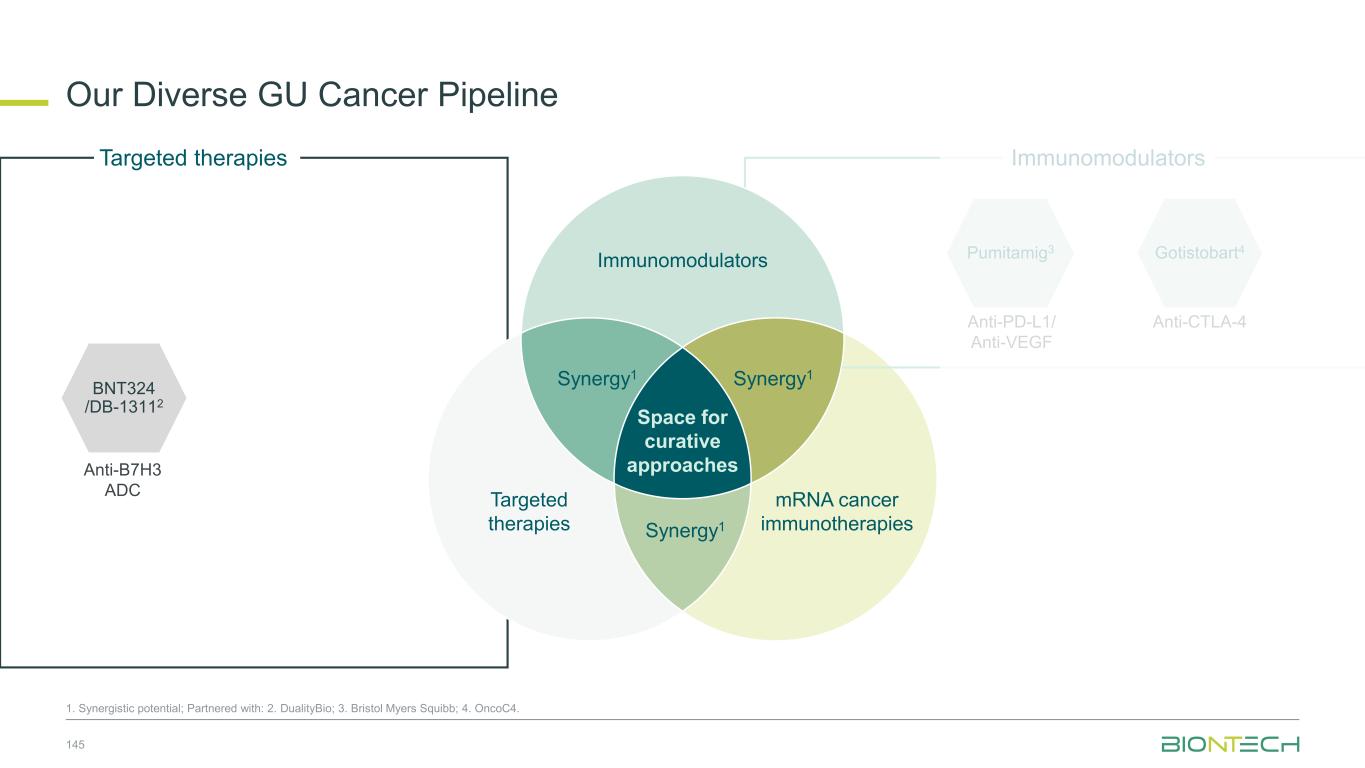 Anti-PD-L1/ Anti-VEGF Pumitamig3 Gotistobart4 Anti-CTLA-4 Immunomodulators Our Diverse GU Cancer Pipeline 145 1. Synergistic potential; Partnered with: 2. DualityBio; 3. Bristol Myers Squibb; 4. OncoC4. Targeted therapies Immunomodulators Space for curative approaches Synergy1 Targeted therapies mRNA cancer immunotherapies Synergy1Synergy1 BNT324 /DB-13112 Anti-B7H3 ADC