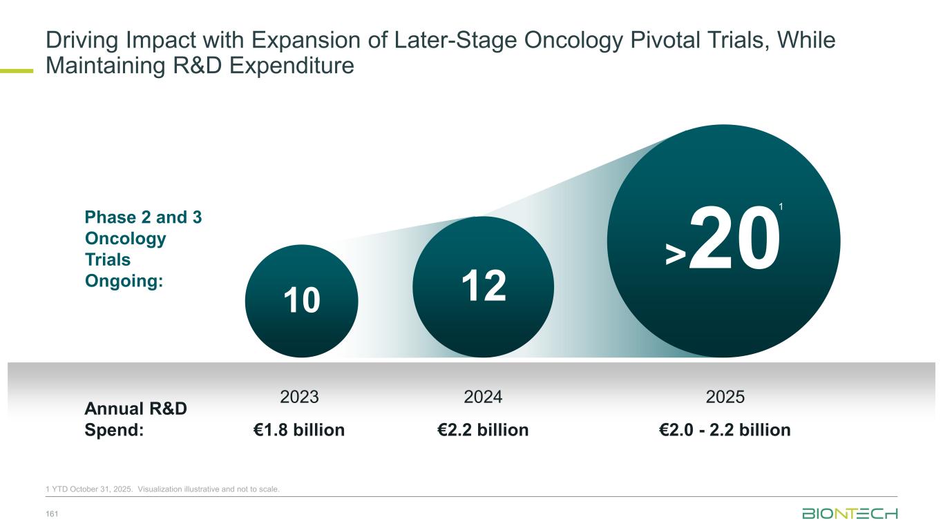 Driving Impact with Expansion of Later-Stage Oncology Pivotal Trials, While Maintaining R&D Expenditure 161 1 YTD October 31, 2025. Visualization illustrative and not to scale. 1210 Phase 2 and 3 Oncology Trials Ongoing: Annual R&D Spend: 2023 €1.8 billion 2024 €2.2 billion 2025 €2.0 - 2.2 billion >20 1
