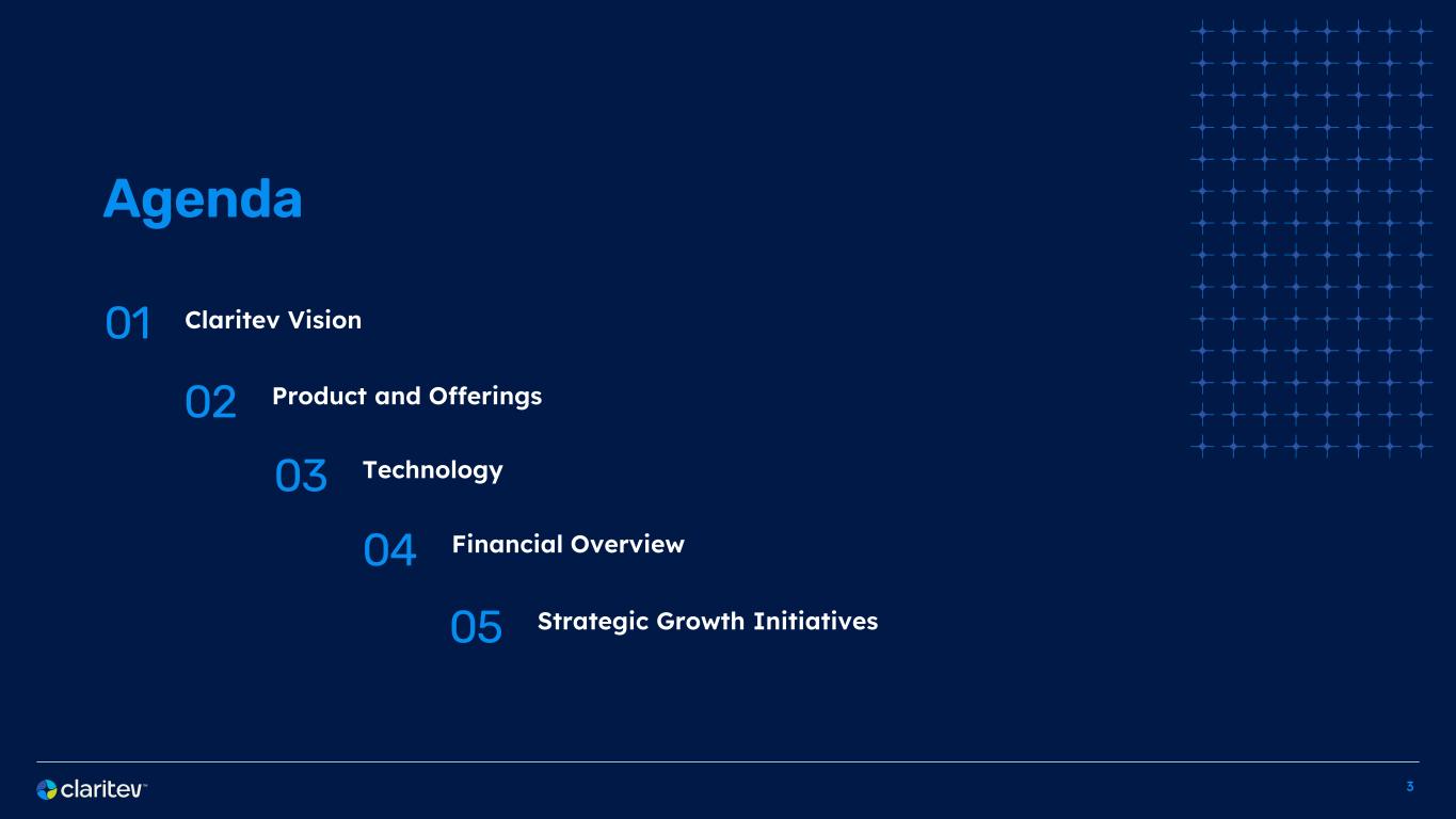 3 01 Claritev Vision 02 Product and Offerings 03 Technology 04 Financial Overview Agenda 05 Strategic Growth Initiatives