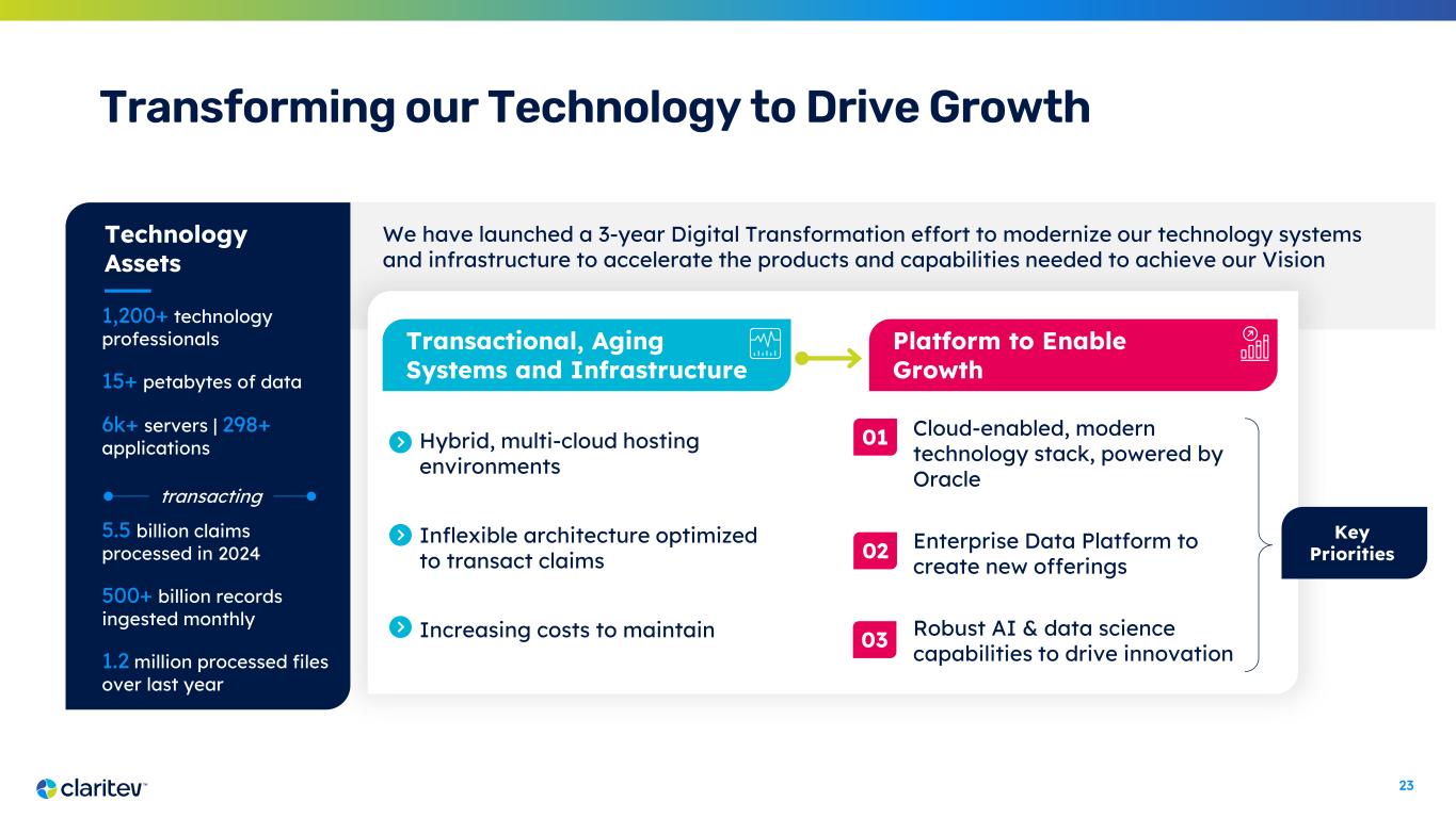 23 Transforming our Technology to Drive Growth Transactional, Aging Systems and Infrastructure Platform to Enable Growth Hybrid, multi-cloud hosting environments Inflexible architecture optimized to transact claims Increasing costs to maintain We have launched a 3-year Digital Transformation effort to modernize our technology systems and infrastructure to accelerate the products and capabilities needed to achieve our Vision Technology Assets 1,200+ technology professionals 15+ petabytes of data 6k+ servers | 298+ applications 5.5 billion claims processed in 2024 500+ billion records ingested monthly 1.2 million processed files over last year transacting Cloud-enabled, modern technology stack, powered by Oracle Enterprise Data Platform to create new offerings Robust AI & data science capabilities to drive innovation Key Priorities 01 03 02