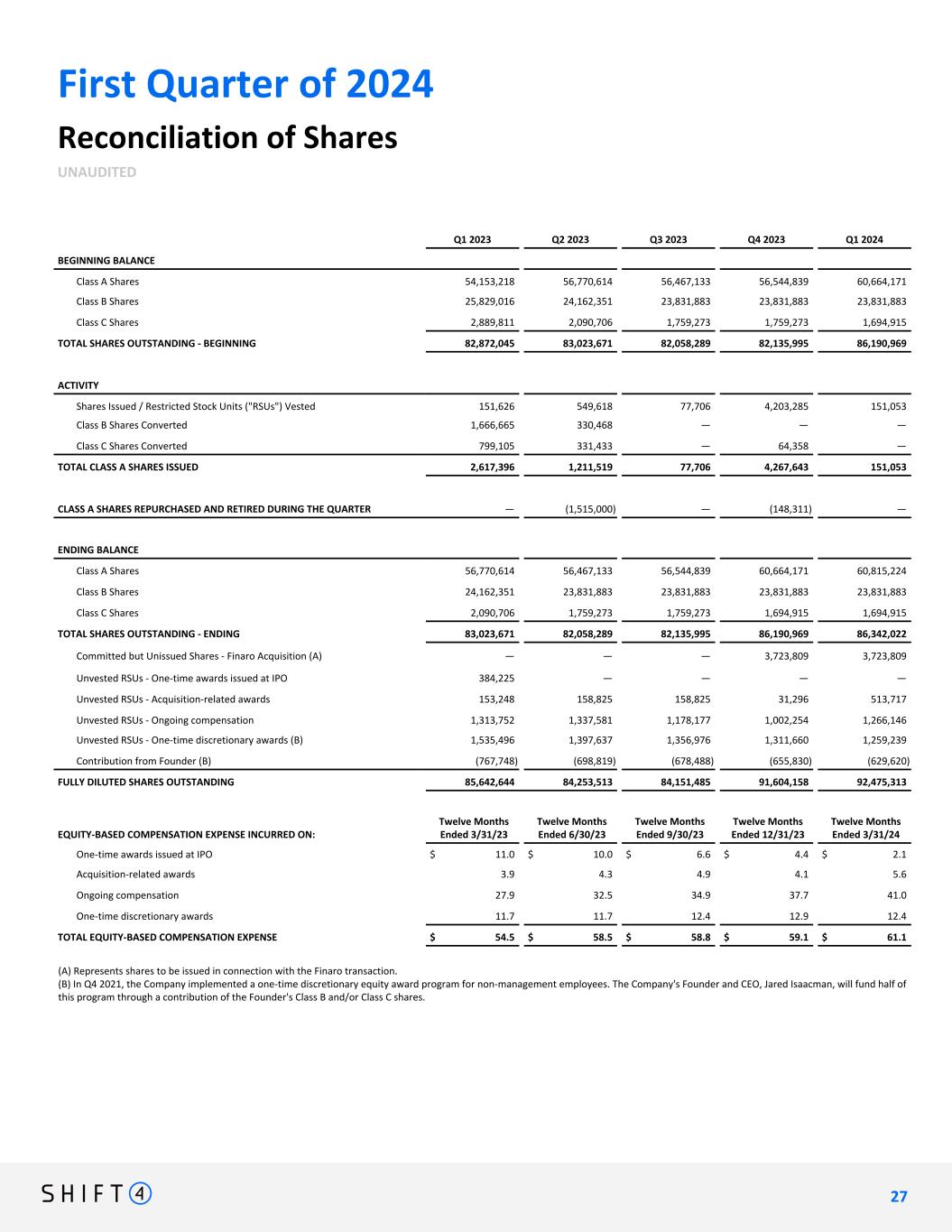 Q1 2024 SHAREHOLDER LETTER INVESTORS.SHIFT4.COM COVERTION B MAJOR CASINO OPERATOR & DEAL ANNOUNCEMENT Exhibit 99.1