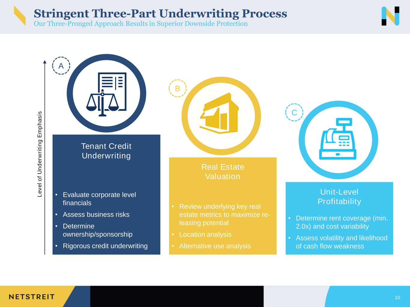 Resilient, Cycle-Tested Investment Grade Credit Tenants with Durable Cash Flows1 >60% 70.7% (54.7% IG and 16.0% IGP) Granular Assets in Highly Fragmented, Undercapitalized Market Segment $3.5 million Avg. Asset Size $1 to $10 million Avg. Asset Size Net Lease Retail Assets with Long Lease Term Benefiting From Contractual Rent Growth ~10 Year WALT 9.7 Year2 WALT Diversification by Industry, Tenant, State1 <15% Industry <50% Top 10 Tenants <15% State 15.1% Industry 44.8% Top 10 Tenants3 12.0% State Significant Focus on Fundamental Real Estate Underwriting Attractive cost basis with durable valuation supported by market rents and demos, physical structure and location, and alternative use analyses 8 Source: Company data as of March 31, 2025, unless otherwise noted. Due to rounding, respective percentage of credit rating may not precisely reflect the absolute figures. 1. Portfolio statistics as a percentage of ABR. 2. Weighted by ABR; excludes lease extension options and investments that secure mortgage loans receivable. 3. Stats incorporates all completed activities as of April 28, 2025, as if they occurred by March 31, 2025. Current MetricsInvestment Philosophy Portfolio Strategy Defensive Tenancy in Necessity-Based and E-commerce-Resistant Retail Industries1 87.7%Primarily Consistent Investment Approach Disciplined and Deliberate Portfolio Construction