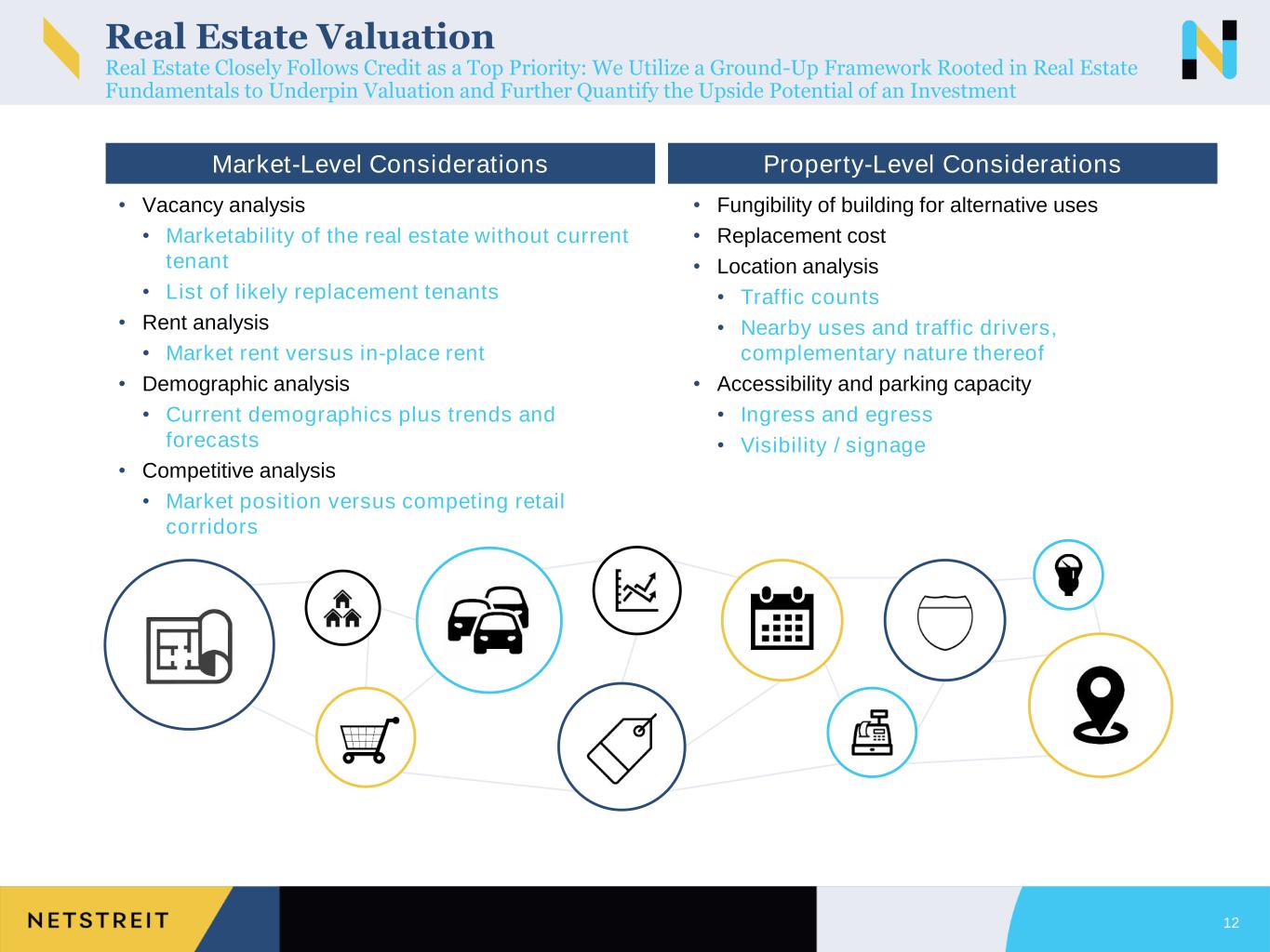 Investment Grade (rated) Investment Grade Profile (unrated) Sub-IG (rated) & Sub-IG Profile (unrated) Description • Validated financial strength and stability • Professional management with standardized operational practices • Focus on corporate guarantee credit • Lower relative yields • Higher competition for deals • IG-caliber balance sheets without explicit rating • Threshold metrics: • At least $1B in sales • Debt / adjusted EBITDA of less than 2.0x • Well-capitalized retailers • National footprint with strong brand equity • Focus on real estate quality / unit- level profitability • Higher relative yields • Lower competition for deals Durability • Coverage and credit enhancements required given more susceptible to market disruptions % Of ABR 54.7% 16.0% 29.3% Lease Terms (WALT, Rent Bumps, etc.) Less negotiating leverage More negotiating leverage Most negotiating leverage Representative Tenants 11 Source: Company data as of March 31, 2025, unless otherwise noted. Due to rounding, respective percentage of credit rating may not precisely reflect the absolute figures. 70.7% IG and IG Profile Defensive, consistent performance through economic cycles Strong Tenant Credit Underwriting Credit-Focused Underwriting Approach Drives Stable Revenue and Long-Term Return on Investment
