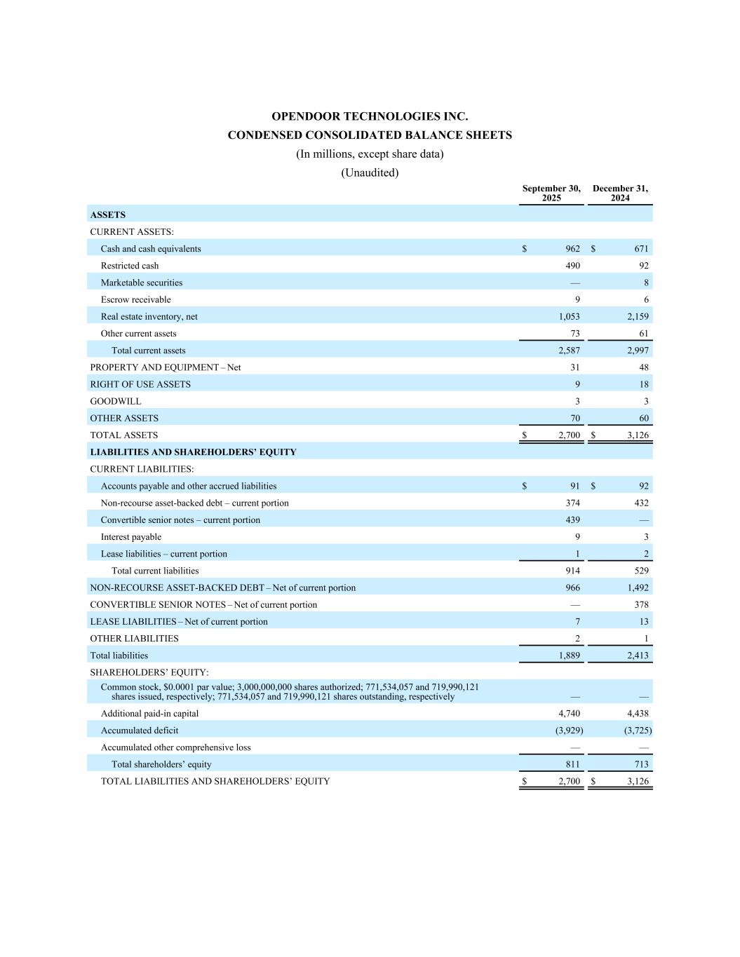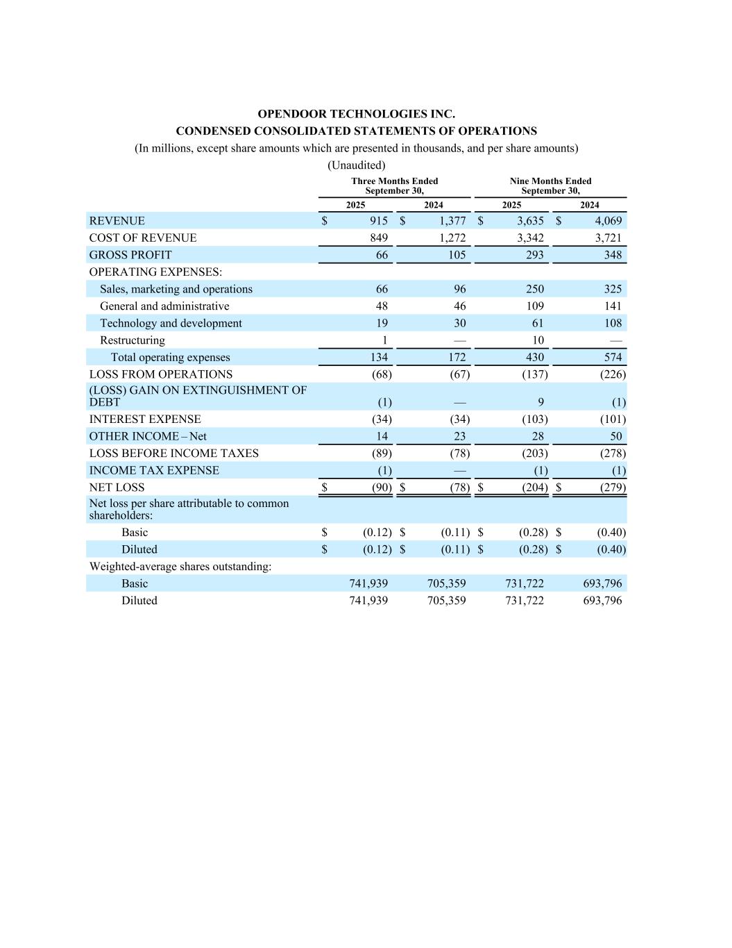 SAN FRANCISCO, California - November 6, 2025 - Opendoor Technologies Inc. (Nasdaq: OPEN), a leading e-commerce platform for residential real estate transactions, today reported financial results for its third quarter ended September 30, 2025.