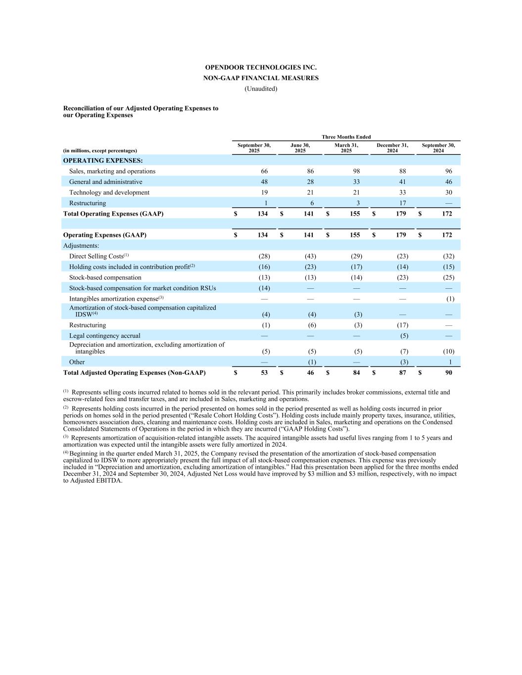 (4)Represents selling costs incurred related to homes sold in the relevant period. This primarily includes broker commissions, external title and escrow-related fees and transfer taxes, and are included in Sales, marketing and operations on the Condensed Consolidated Statements of Operations.