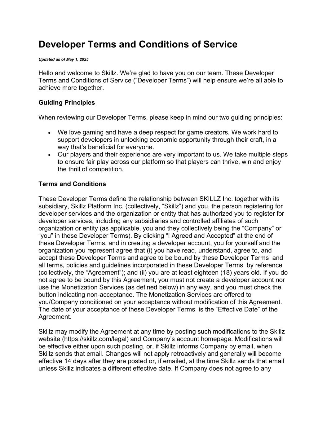 •attract and retain successful relationships with third-party mobile game developers (“developers” and each a “developer”) that develop and update games hosted on Skillz’s platform;