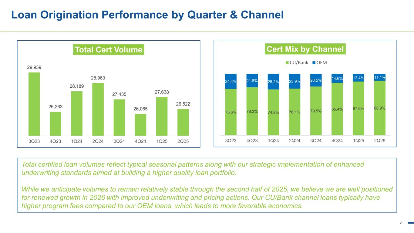 2025年第3四半期については、現在のところ、認定ローン総額は22,500~24,500件になると予想している。