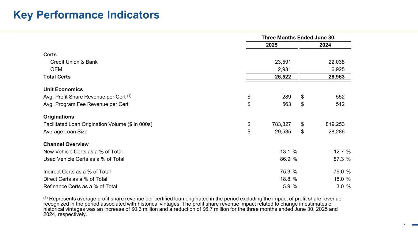 -当社は2025年第2四半期に26,522件の認証ローンを促進した(2024年第2四半期は28,963件)。