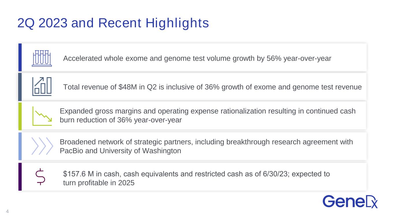 第2四半期の総収益4,800万ドルには、エクソームおよびゲノム検査の収益が前年同期比36%増となったことが含まれる
