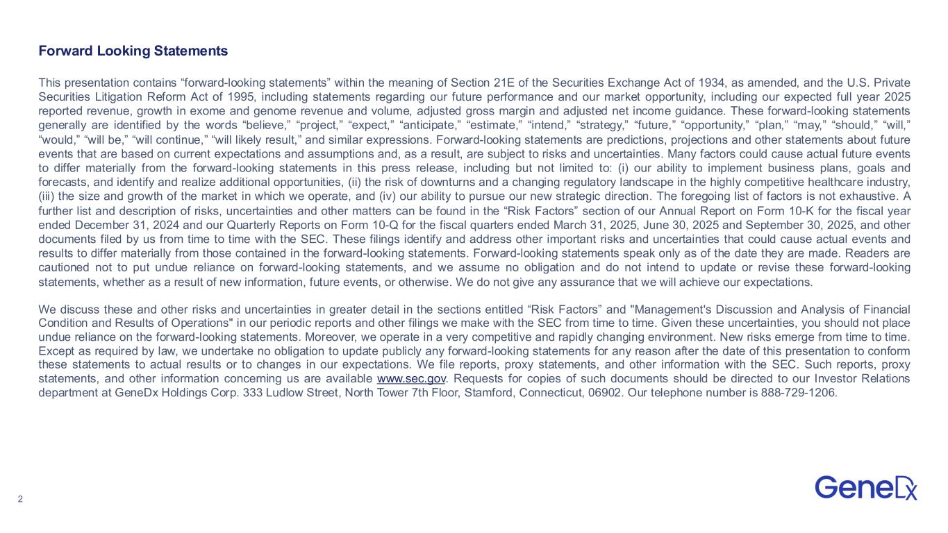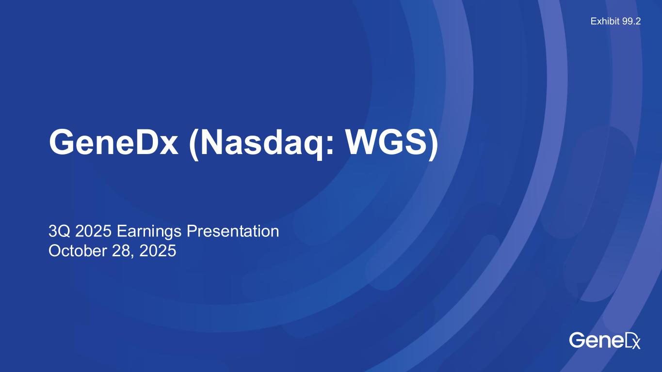 メリーランド州ゲーサーバーグ、2025年10月28日 - ゲノムの知見を通じて健康状態の改善を提供するリーダー企業であるジーンデックス・ホールディングス・コーポレーション(Nasdaq: WGS)は本日、2025年第3四半期の決算を発表した。