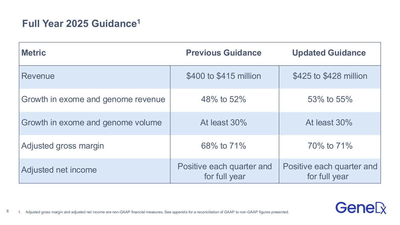 -エクソームおよびゲノムの売上高が通年で53%から55%成長し、売上高が4億2500万ドルから4億2800万ドルになるとのガイダンスを上方修正