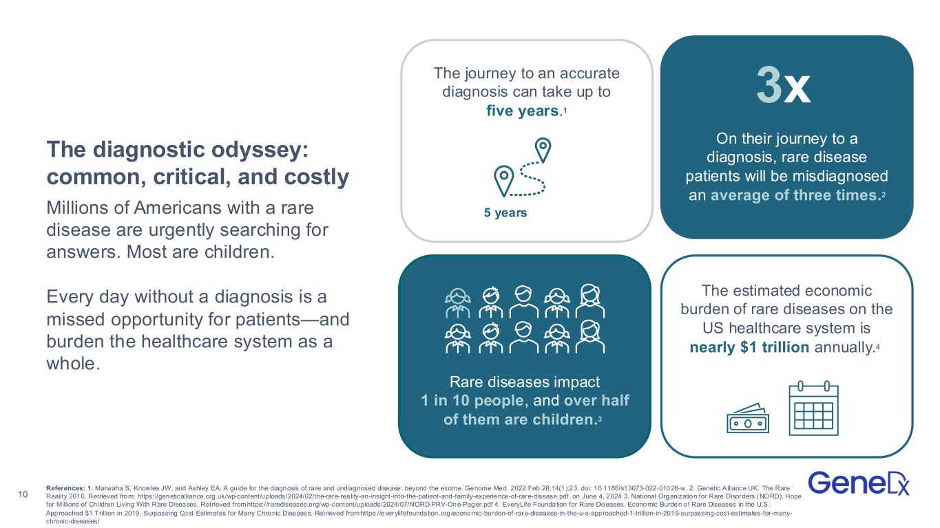 -最大の希少疾患データセットであるGeneDx InfinityTM を導入。このデータセットは希少疾患に関する知見の基盤となり、GeneDx社のExomeDxTM とGenomeDxTM の原動力となる。