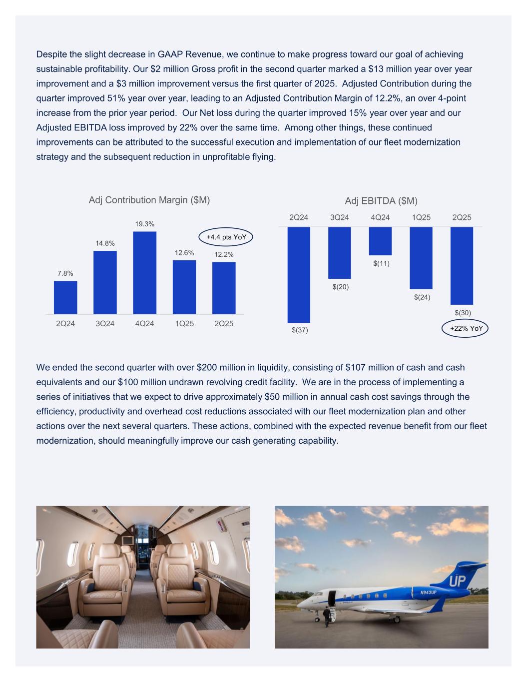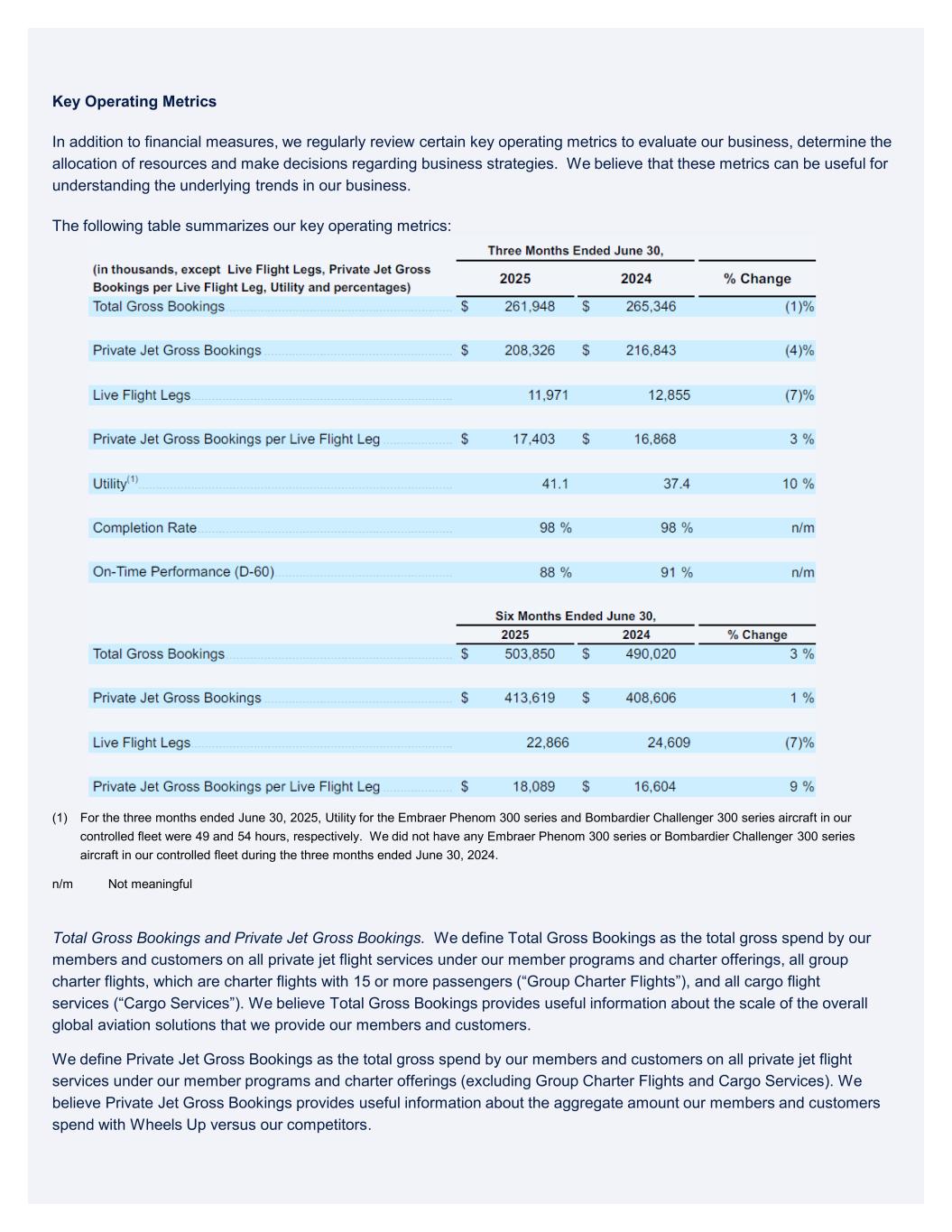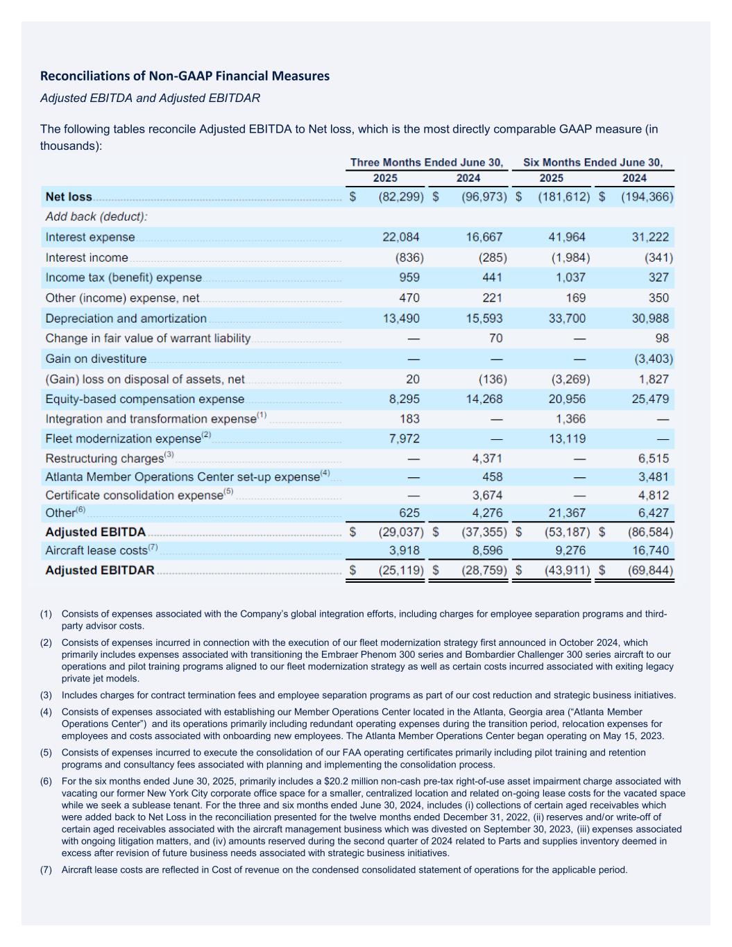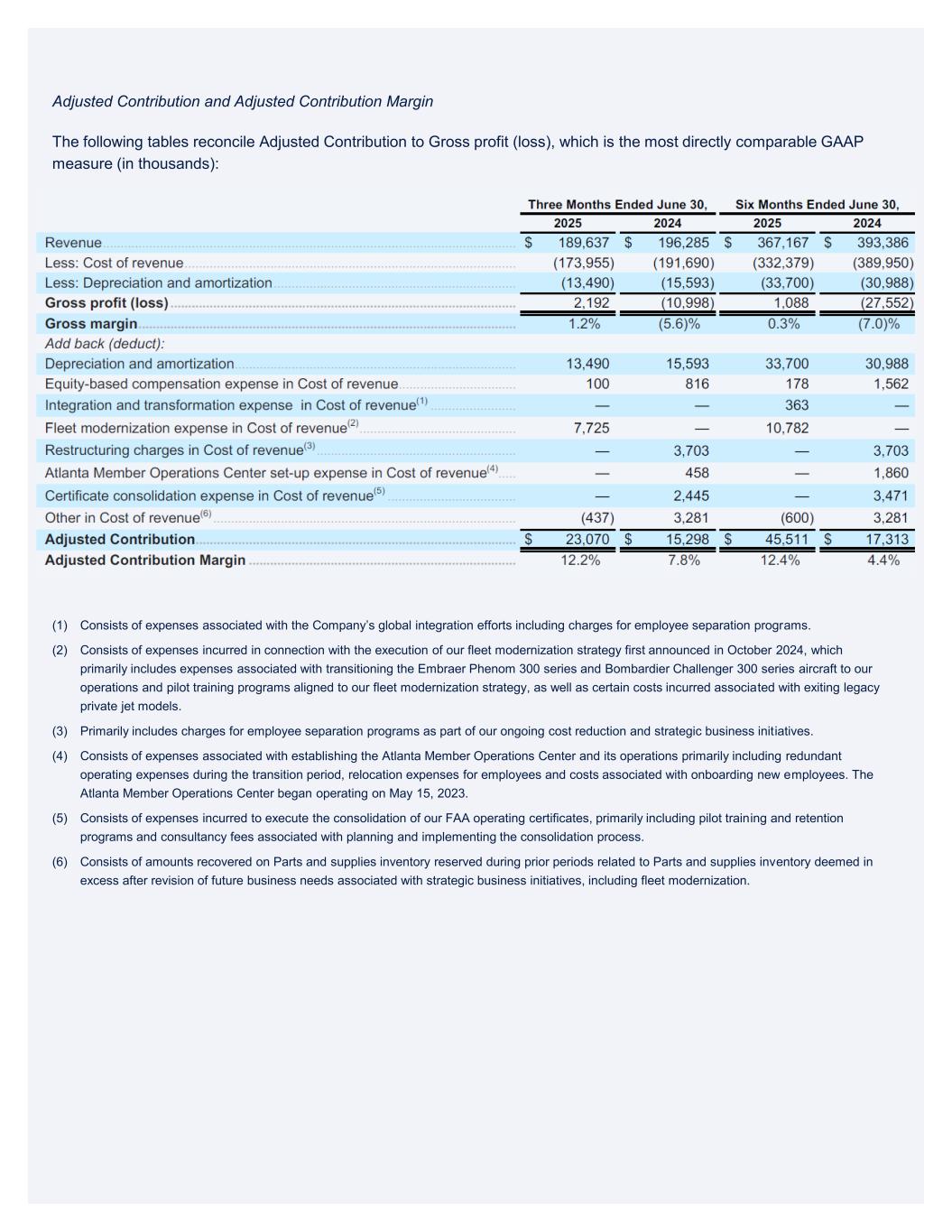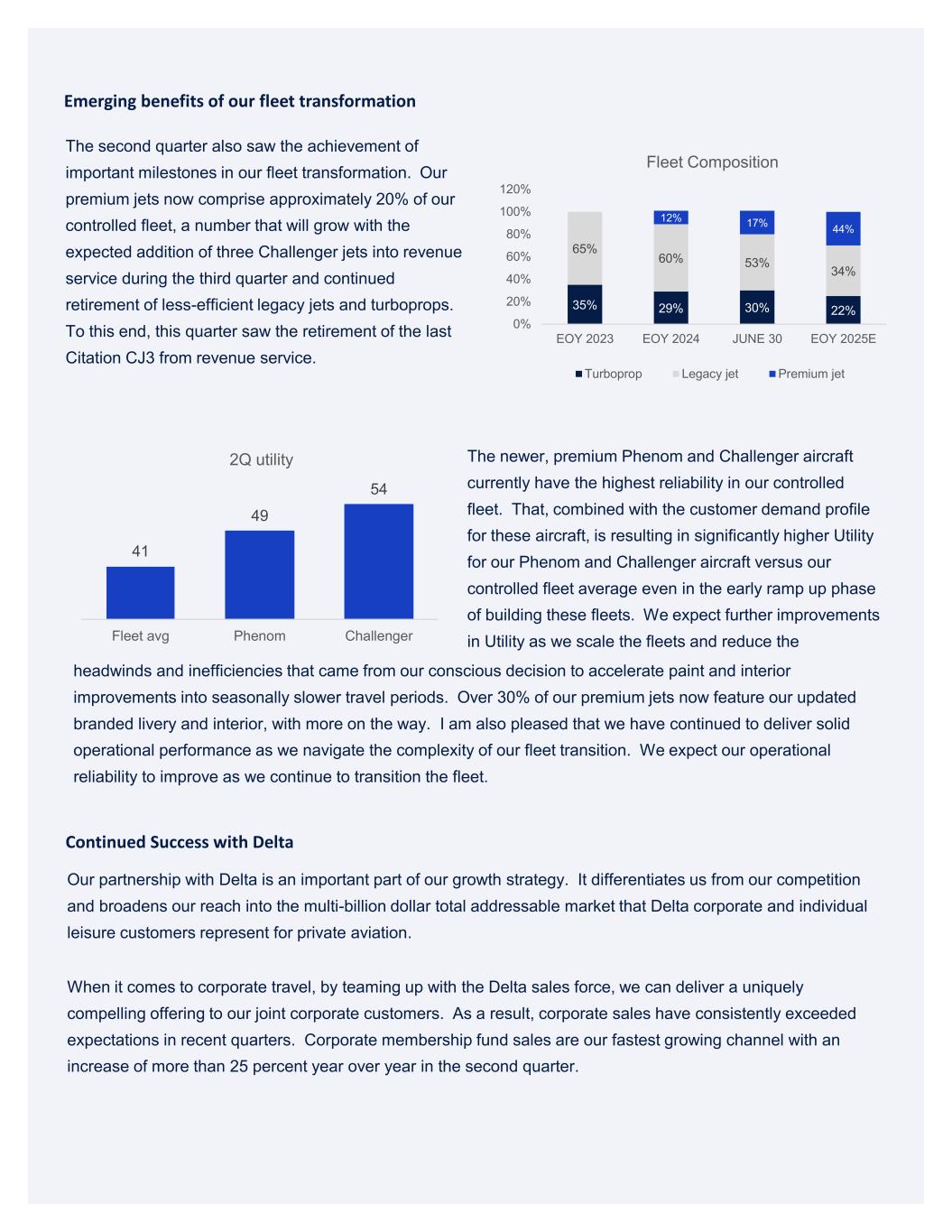 -機材近代化の進展。プレミアム・フェノムおよびチャレンジャー・ジェット機は、当四半期末現在、ウィールス・アップの管理機体の約20%を占めており、同社は2025年第3四半期に3機のチャレンジャー300を収益サービスに追加する予定である。保有機材の合理化の一環として、同社は2025年上半期中に31機のレガシー機を売却またはリース返却を完了し、サイテーションCJ3を収益運航から退役させた。
