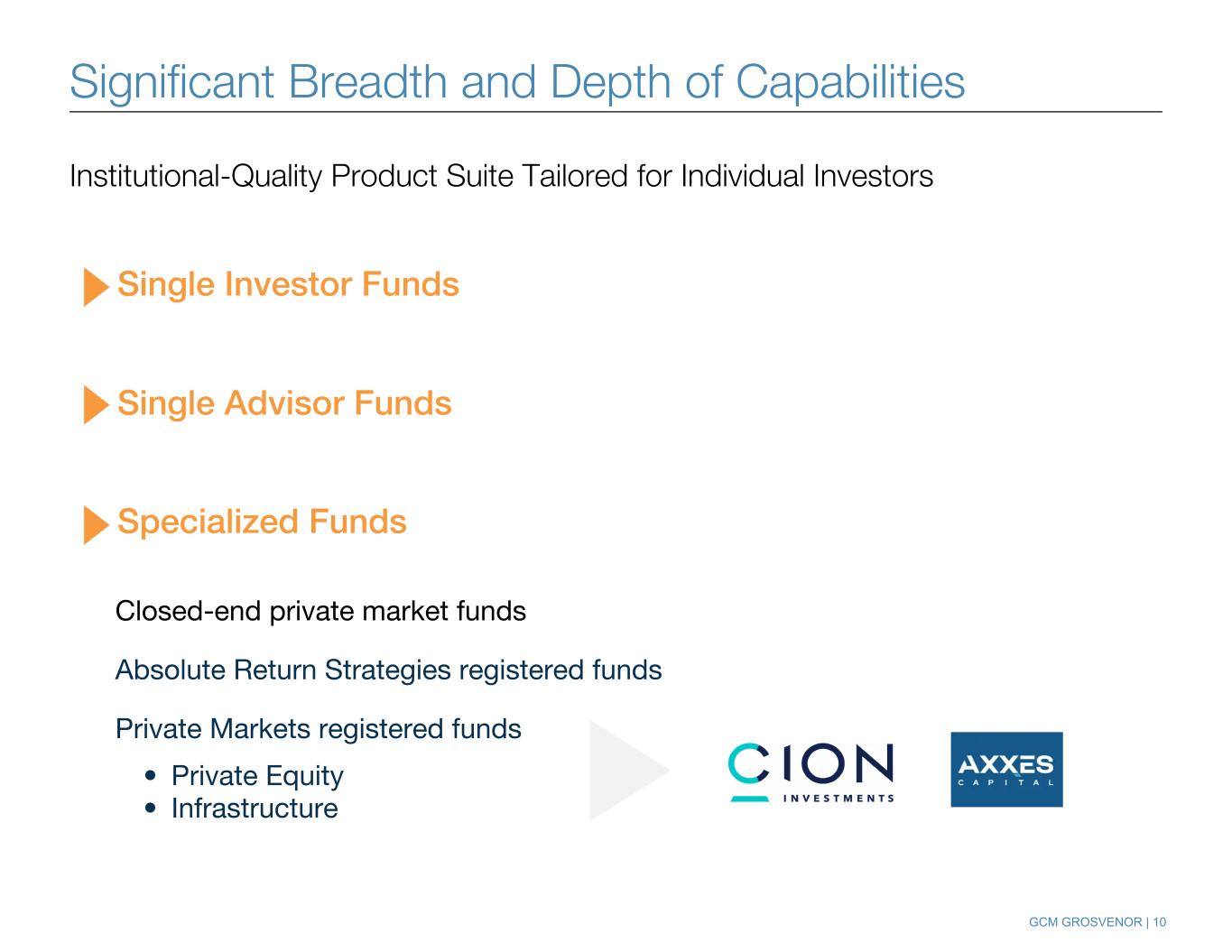 GCM GROSVENOR | 3 THIS PRESENTATION CONTAINS CERTAIN FORWARD- LOOKING STATEMENTS within the meaning of the Private Securities Litigation Reform Act of 1995, including statements regarding the expected future performance of GCM Grosvenor’s business. These forward-looking statements generally are identified by the words “believe,” “project,” “expect,” “anticipate,” “estimate,” “intend,” “strategy,” “future,” “opportunity,” “plan,” “may,” “should,” “will,” “would” and similar expressions. Forward-looking statements are predictions, projections and other statements about future events that are based on current expectations and assumptions and, as a result, are subject to risks and uncertainties. Many factors could cause actual future events to differ materially from the forward- looking statements in this presentation, including without limitation, the historical performance of GCM Grosvenor's funds may not be indicative of GCM Grosvenor's future results; risks related to redemptions and termination of engagements; the variable nature of GCM Grosvenor's revenues; competition in GCM Grosvenor's industry; effects of government regulation or compliance failures; market, geopolitical and economic conditions; identification and availability of suitable investment opportunities; risks relating to our internal control over financial reporting; and risks related to the performance of GCM Grosvenor's investments. You should carefully consider the foregoing factors and the other risks and uncertainties described in the “Risk Factors” sections of the Annual Report on Form 10-K filed by GCM Grosvenor Inc. on February 29, 2024 and its other filings with the U.S. Securities and Exchange Commission. These filings identify and address other important risks and uncertainties that could cause actual events and results to differ materially from those contained in the forward- looking statements. Forward-looking statements speak only as of the date they are made. Readers are cautioned not to put undue reliance on forward-looking statements, and GCM Grosvenor assumes no obligation and does not intend to update or revise these forward-looking statements, whether as a result of new information, future events, or otherwise, except as required by law. Forward Looking Statements Media Contacts Tom Johnson and Abigail Ruck H/Advisors Abernathy tom.johnson@h-advisors.global/ abigail.ruck@h-advisors.global 212-371-5999 Public Shareholders Contact Stacie Selinger Head of Investor Relations sselinger@gcmlp.com 312-506-6583
