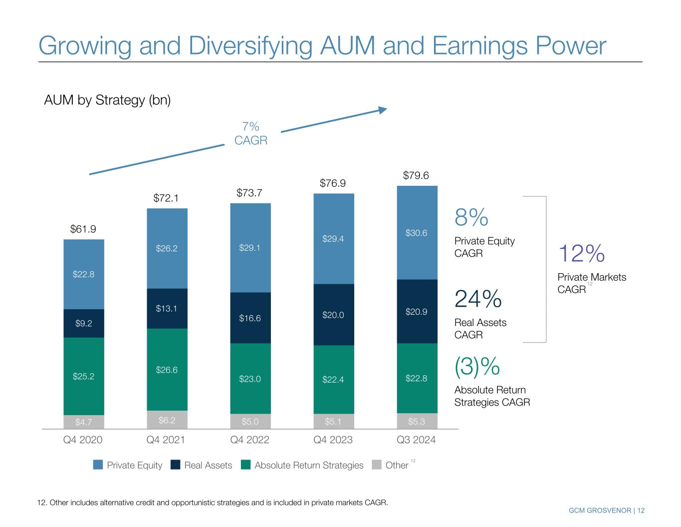 GCM GROSVENOR | 6 Growth in Key Business Drivers December 31, 2020 September 30, 2024 Growing Earnings Power $62bn $80bn AUM Private Markets Growing as a Percentage 54% 66% Private Markets % of FPAUM Shifting Towards Direct- Oriented Strategies 39% 51% Direct-Oriented Strategies % of Private Markets AUM Operating Leverage in Business 31% 41% LTM FRE Margin Carried Interest Earnings Potential Increasing $133mm $388mm Firm Share of Carried Interest Balance