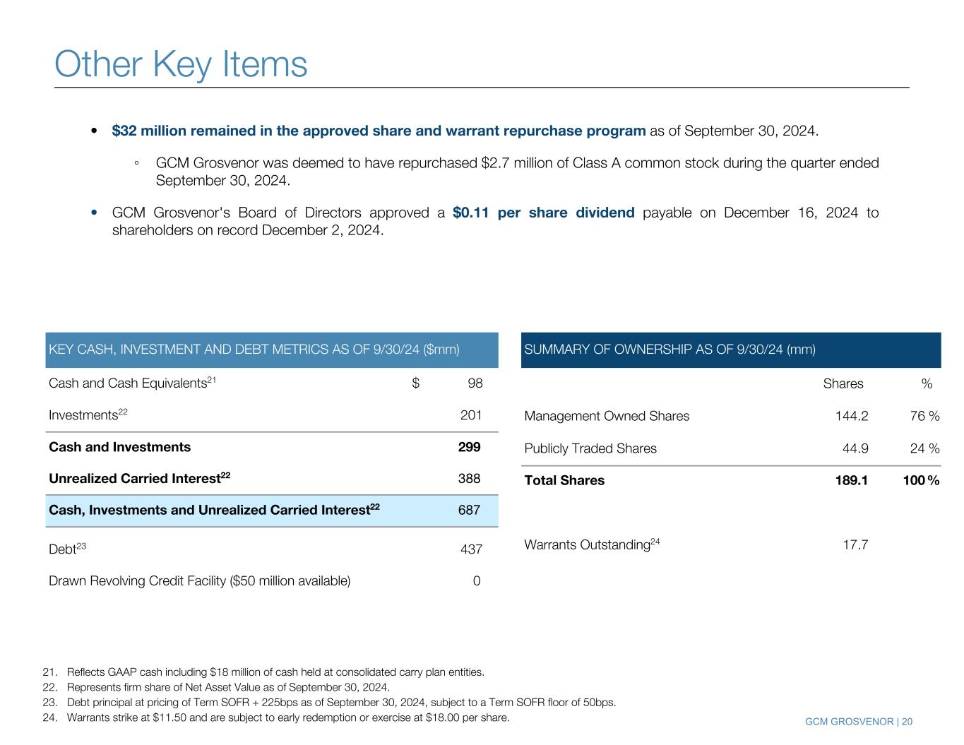GCMグロスブナーは、GCMグロスブナーのウェブサイト(https://www.gcmgrosvenor.com/shareholder-events)の一般株主向けセクションに、2024年9月30日に終了する第3四半期の業績に関する詳細なプレゼンテーションを発表した。