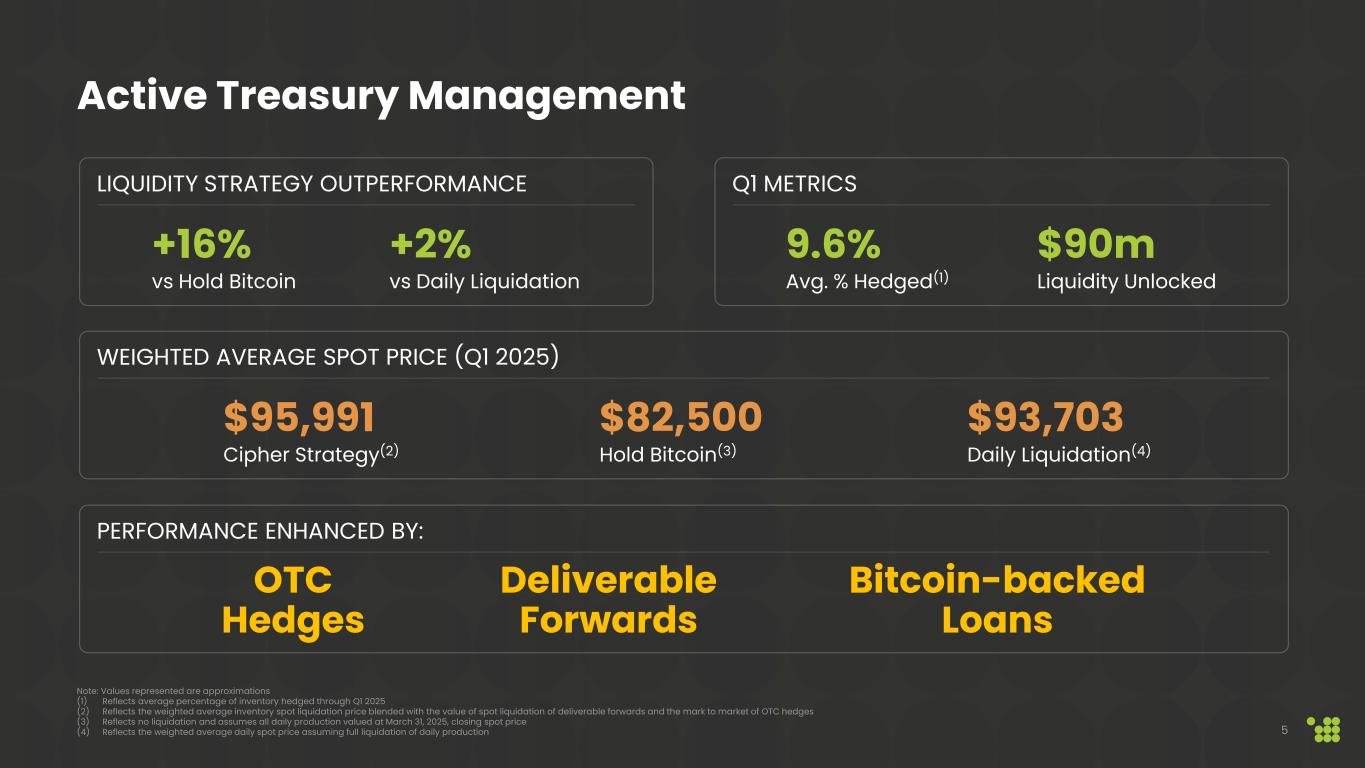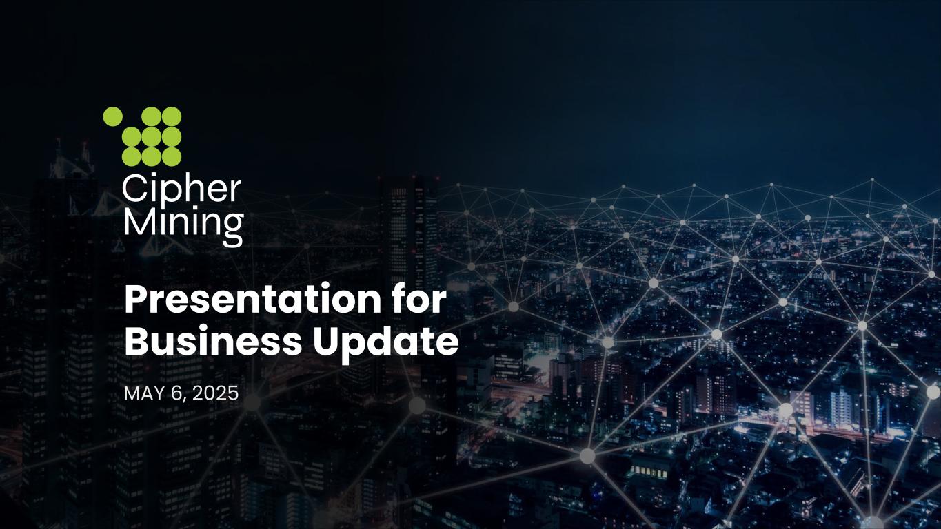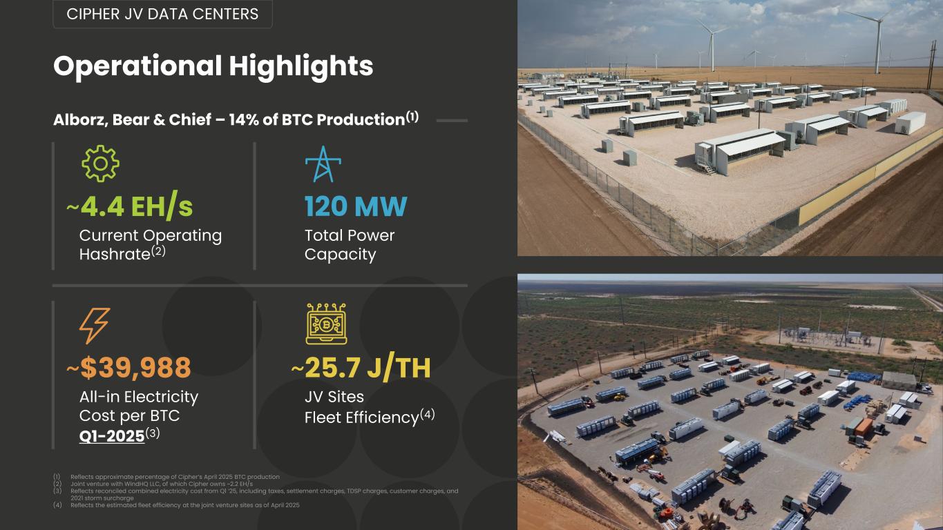 ニューヨーク - 2025 年 5 月 6 日 - サイファー・マイニング社(NASDAQ: CIFR)(以下「サイファー」または「当社」)は本日、2025 年第 1 四半期決算を発表し、事業と事業戦略に関する最新情報を発表しました。