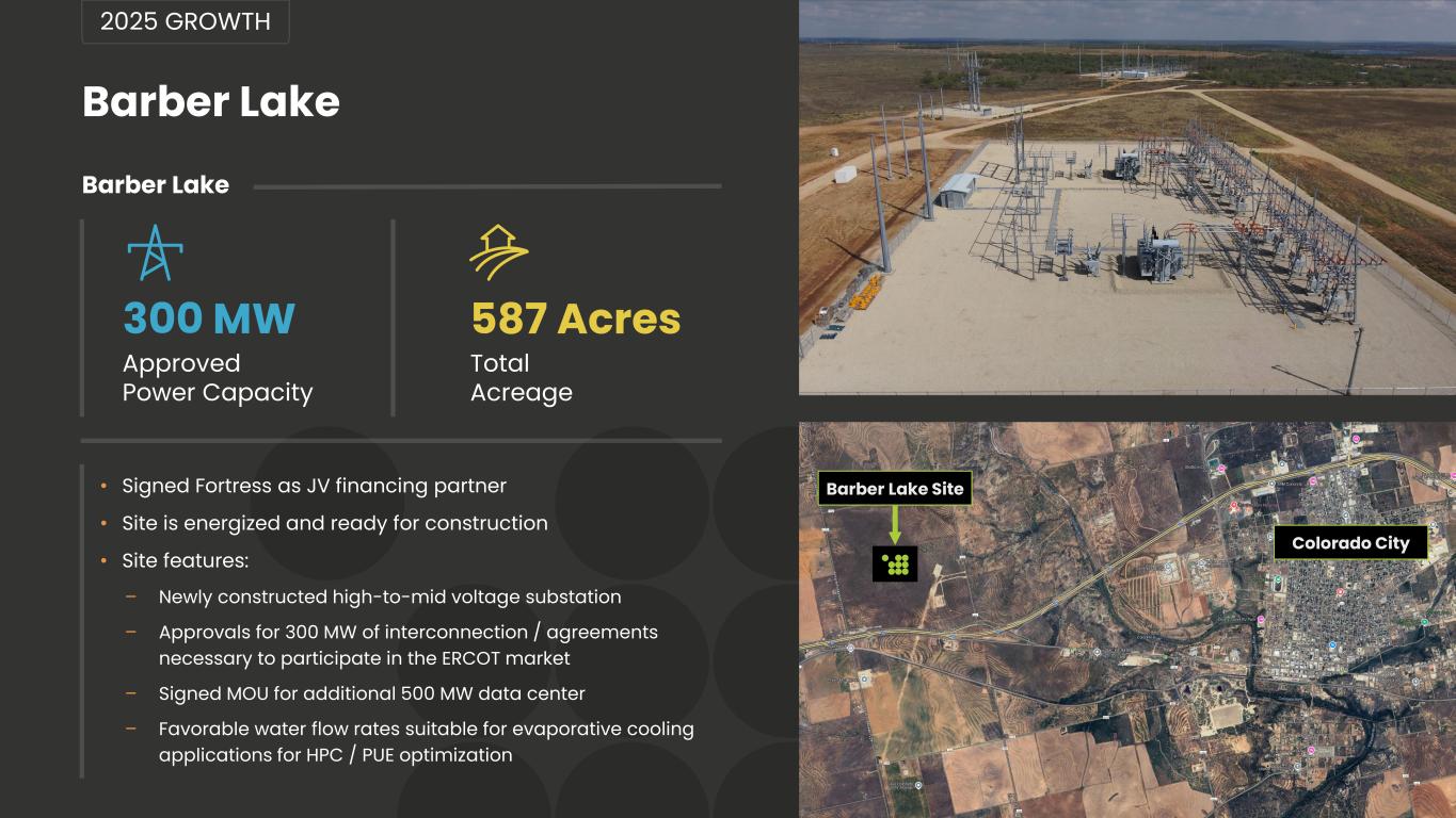 「第1四半期は、2025年の事業拡大計画を推進するため、規律ある実行と着実な進展が顕著でした」とタイラー・ペイジ最高経営責任者(CEO)は述べた。「特に、バーバーレイクでの次世代データセンター開発において、クラス最高の資金調達パートナーであるフォートレスと提携できたことは大きな喜びです。フォートレスは、データセンター開発における豊富な経験をもたらすだけでなく、ハイパースケーラーとの強力なネットワークにより、我々の活発な話し合いを補完してくれるでしょう。"
