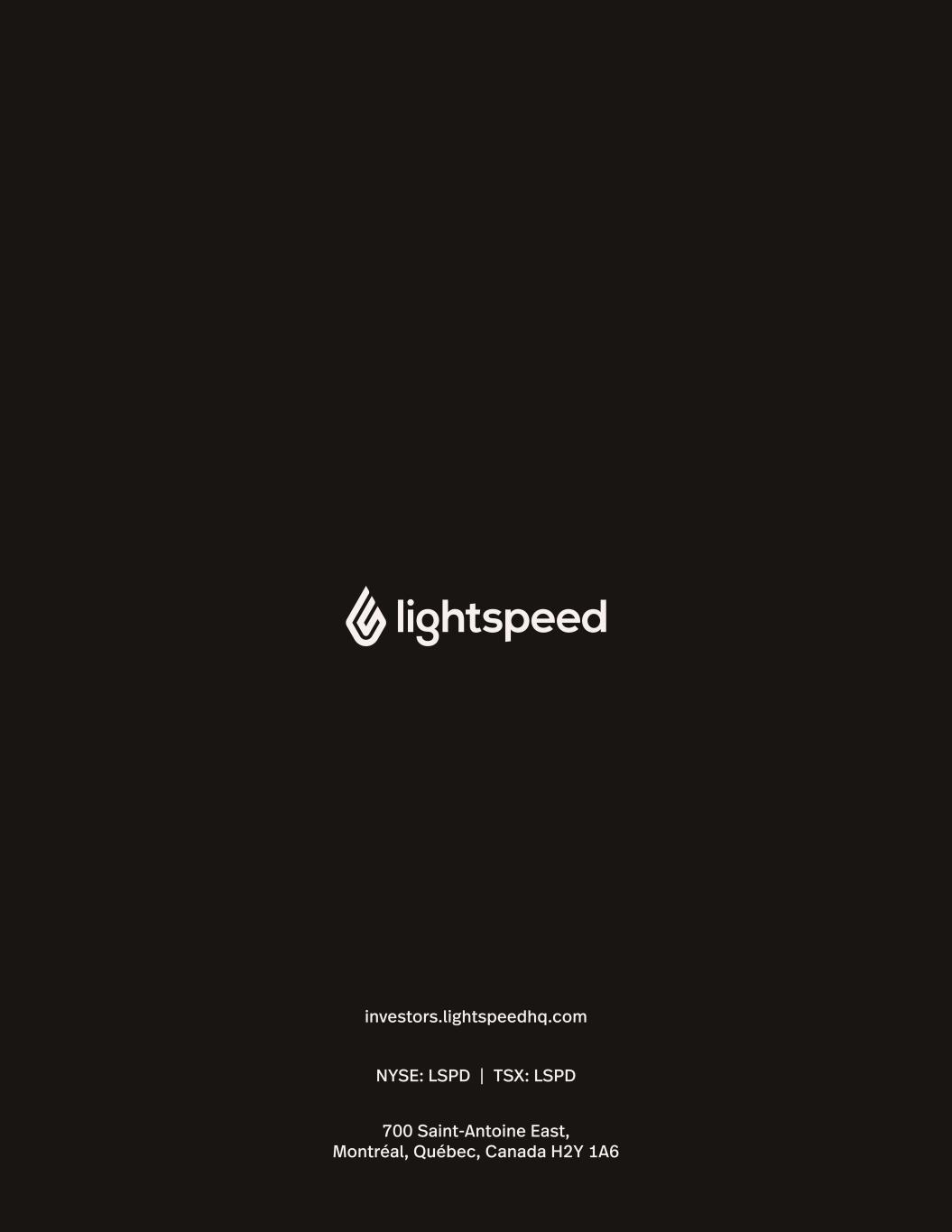700 Saint-Antoine East, Montréal, Québec, Canada H2Y 1A6 NYSE: LSPD | TSX: LSPD investors.lightspeedhq.com
