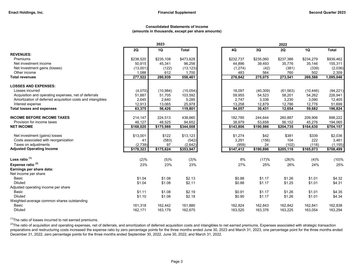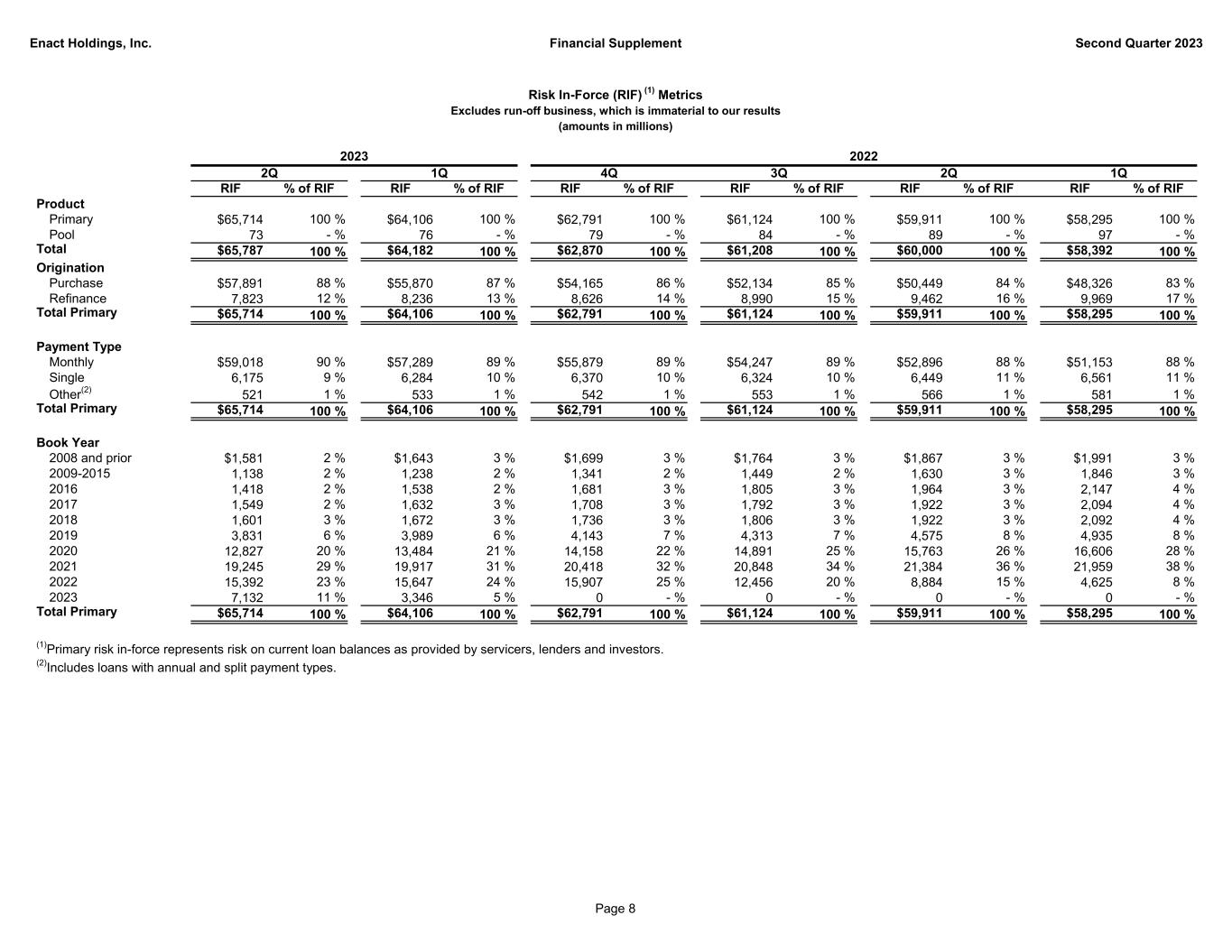 ノースカロライナ州ローリー、2023年8月1日 - エナクト・ホールディングス(Nasdaq: ACT)は本日、2023年第2四半期の決算を発表した。