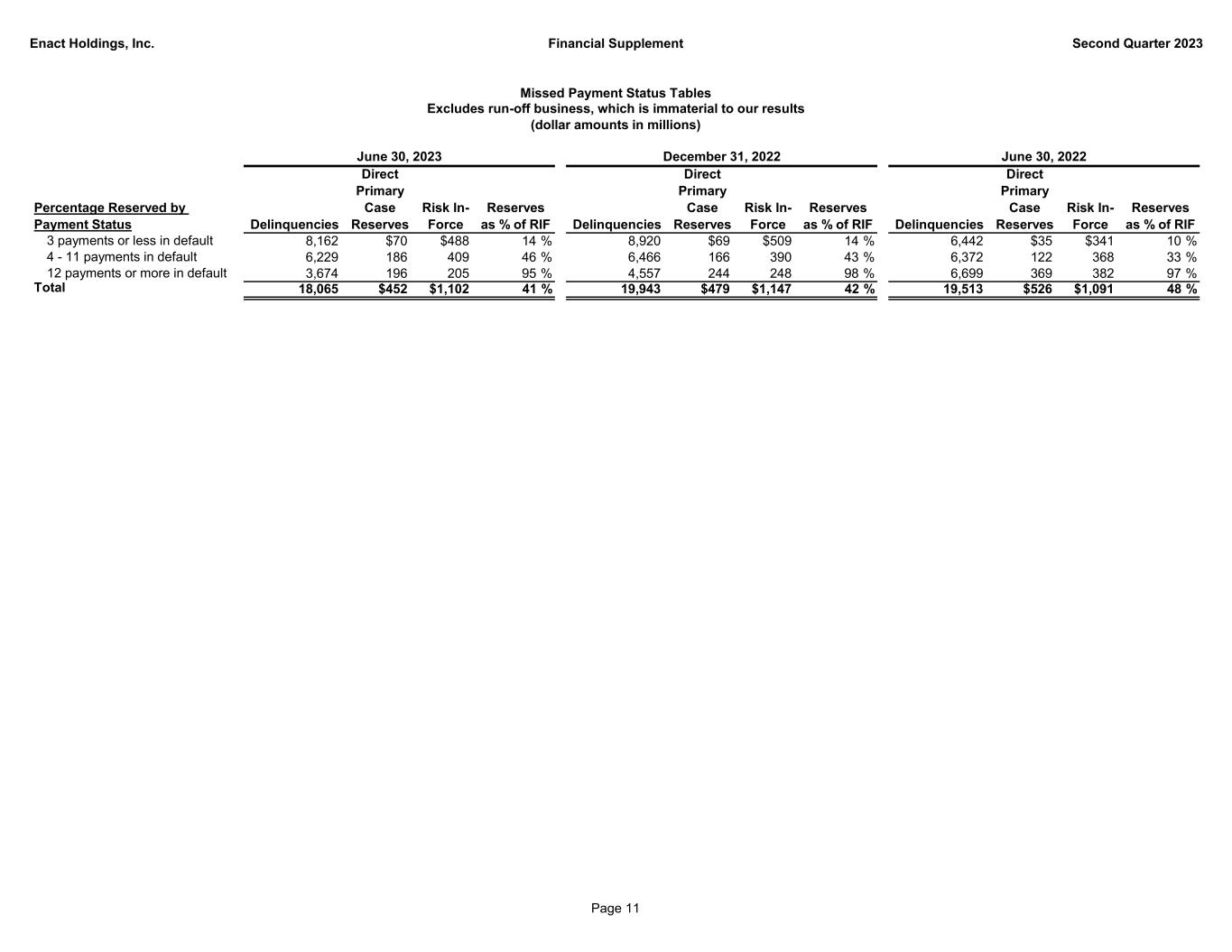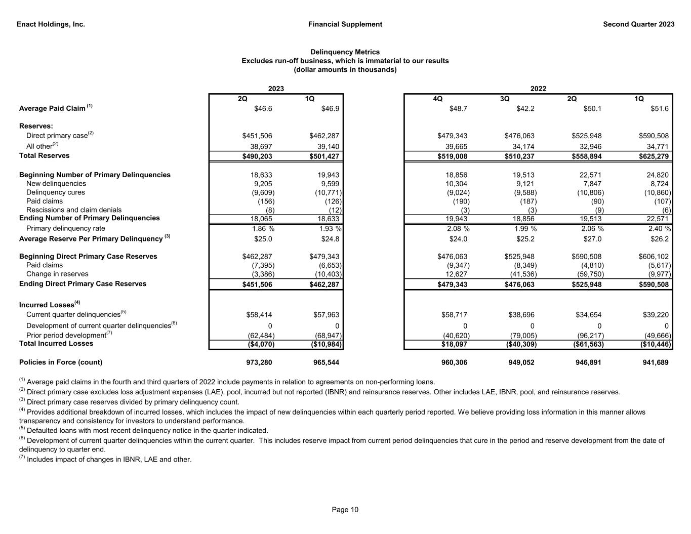 -これに対し、2023 年第 1 四半期はそれぞれ 1,100 万ドル、5%であり、2022 年第 2 四半期はそれぞれ 6,200 万ドル、26%でした。前四半期比および前年同期比での増加は、主に 2020 年から 2022 年上半期の延滞に対する当初の見込みを上回る治癒実績により、6,300 万ドルの支払準備金を取り崩したことによるもので、2023 年第 1 四半期は 7,000 万ドル、2022 年第 2 四半期は 9,600 万ドルの支払準備金を取り崩しました。