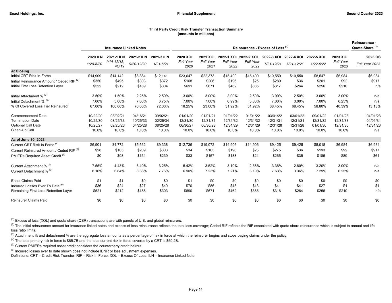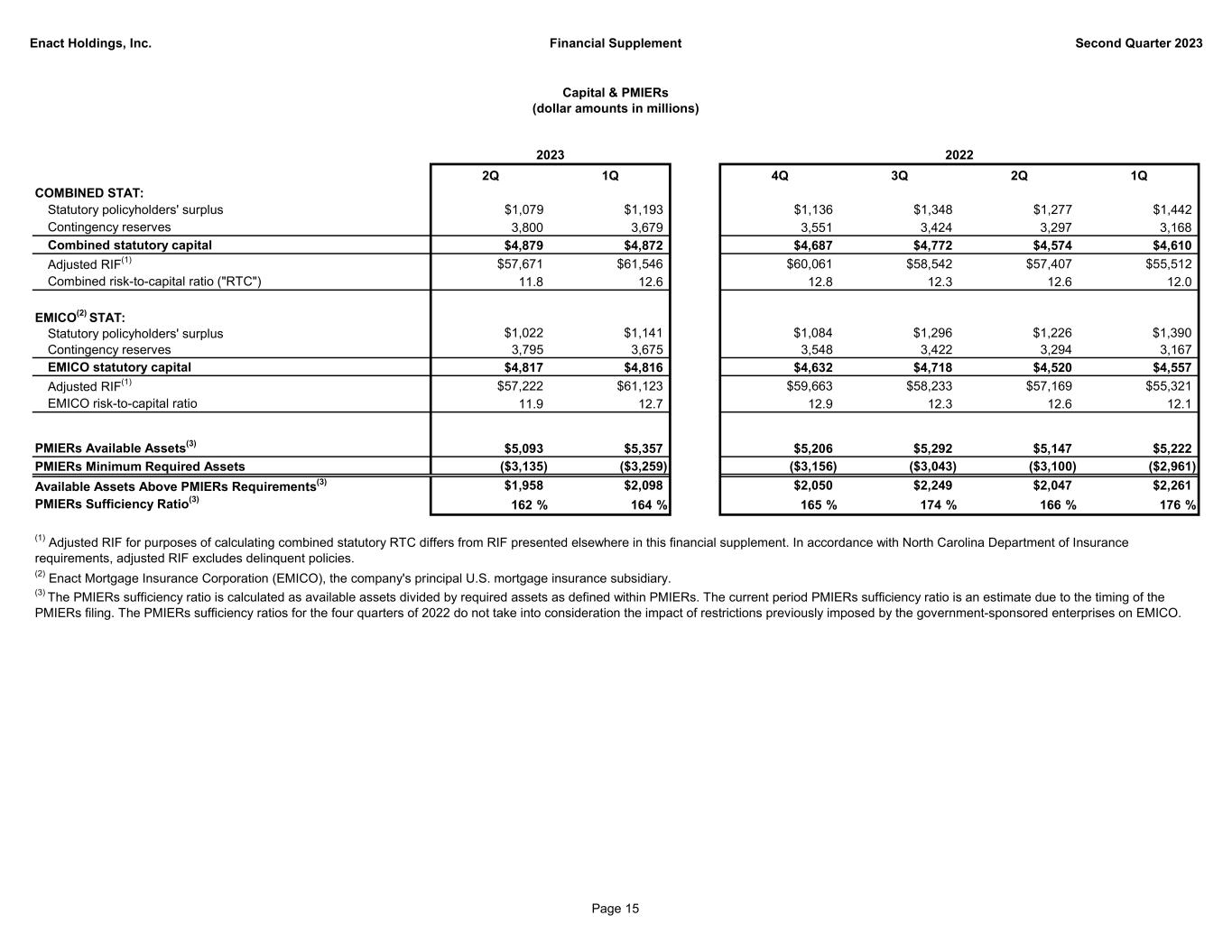 「エナクトのロヒト・グプタ社長兼最高経営責任者(CEO)は、次のように述べています。「第 2 四半期は、高いパーシステンシーに支えられた好調な新契約の獲得により、保有契約高が過去最高を記録する一方、良好な与信実績と費用効率により、堅調な収益とリターンを達成することができました。「プラットフォームの強化、リスク管理、強固な資本バッファーの維持、株主への資本還元のコミットメントの実現など、戦略のあらゆる側面を実行しました。今後も、お客さまにサービスを提供し、保険ポートフォリオの責任ある成長を促進し、長期的な価値を創造していく態勢は整っています。
