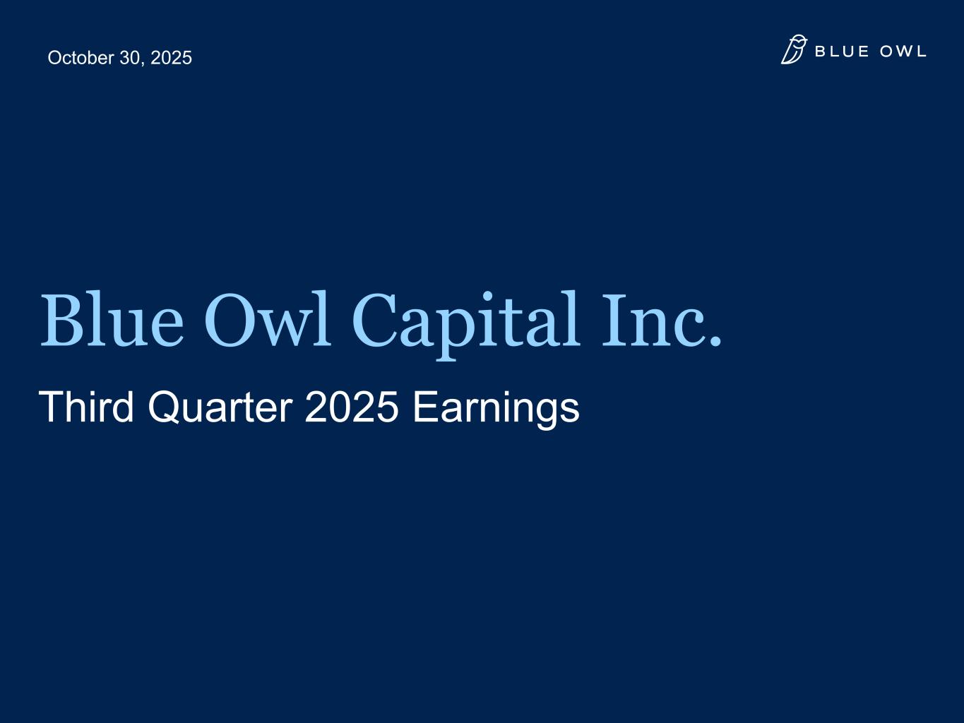 Blue Owl Capital Inc. Third Quarter 2025 Earnings October 30, 2025