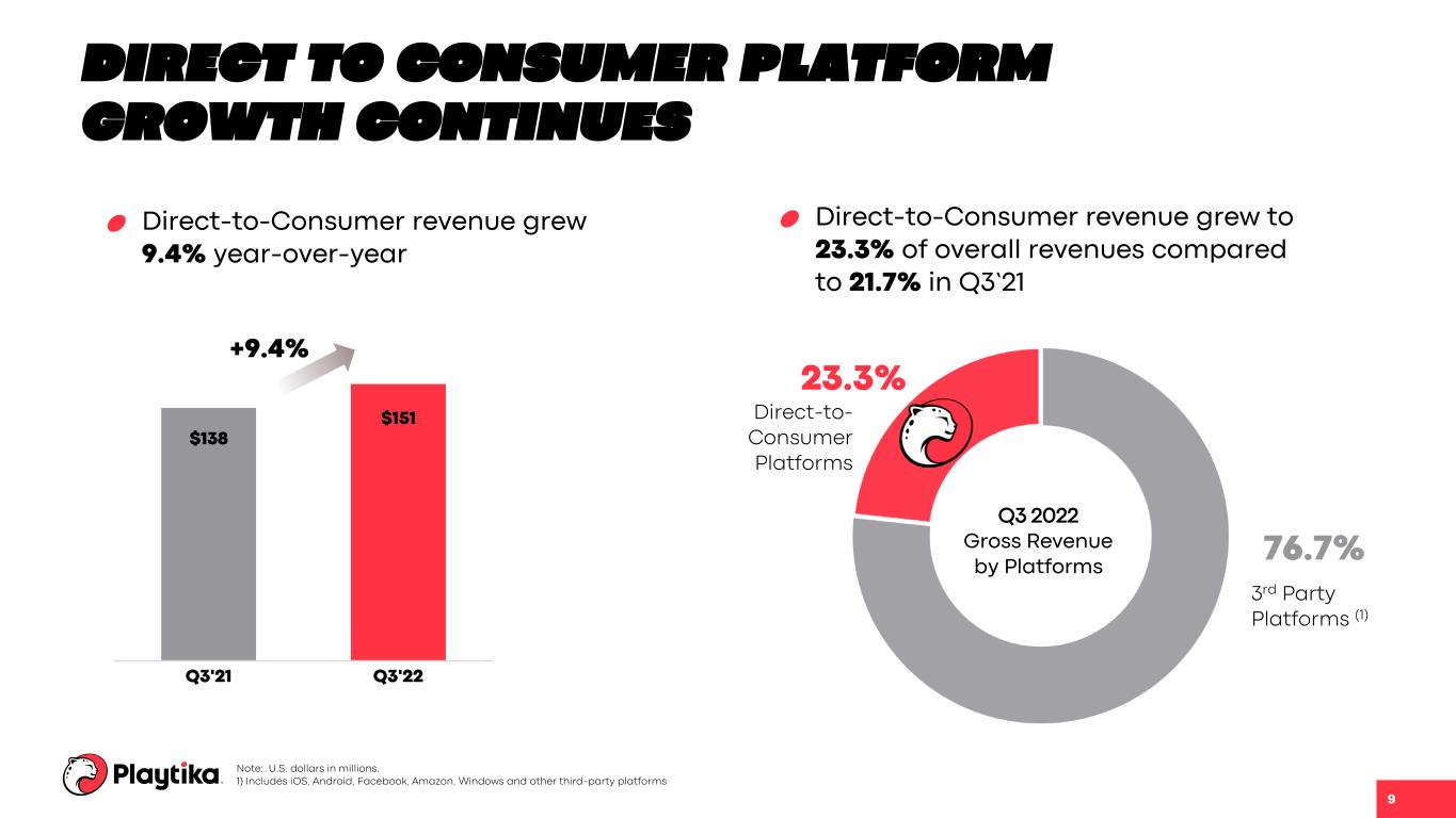 イスラエル・ヘルズリヤ - 2022年11月8日 - Playtika Holding Corp. (NASDAQ: PLTK) は本日、2022年9月30日までの第3四半期の決算を発表しました。