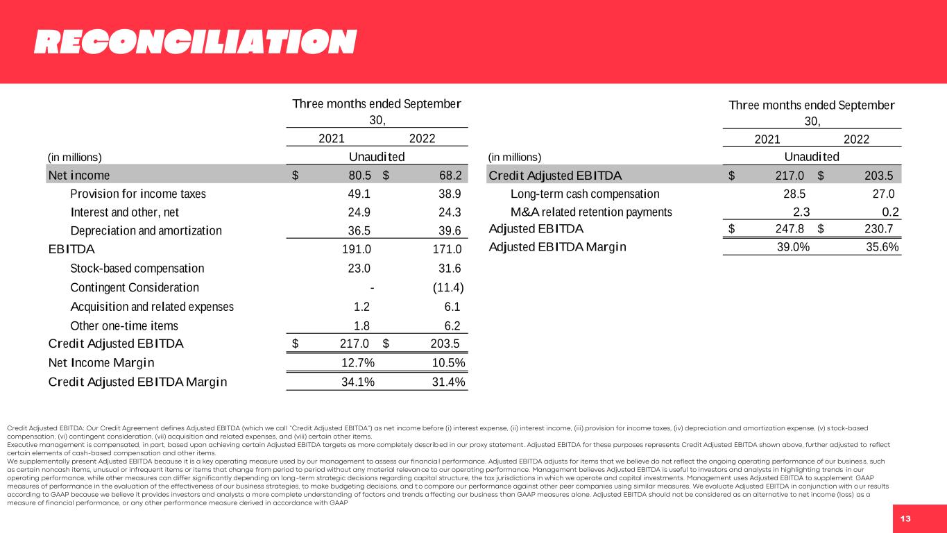 -以下に定義する非GAAPベースの財務指標であるクレジット調整後EBITDAは、前年同期の2億1700万ドルに対し、2億350万ドルでした。