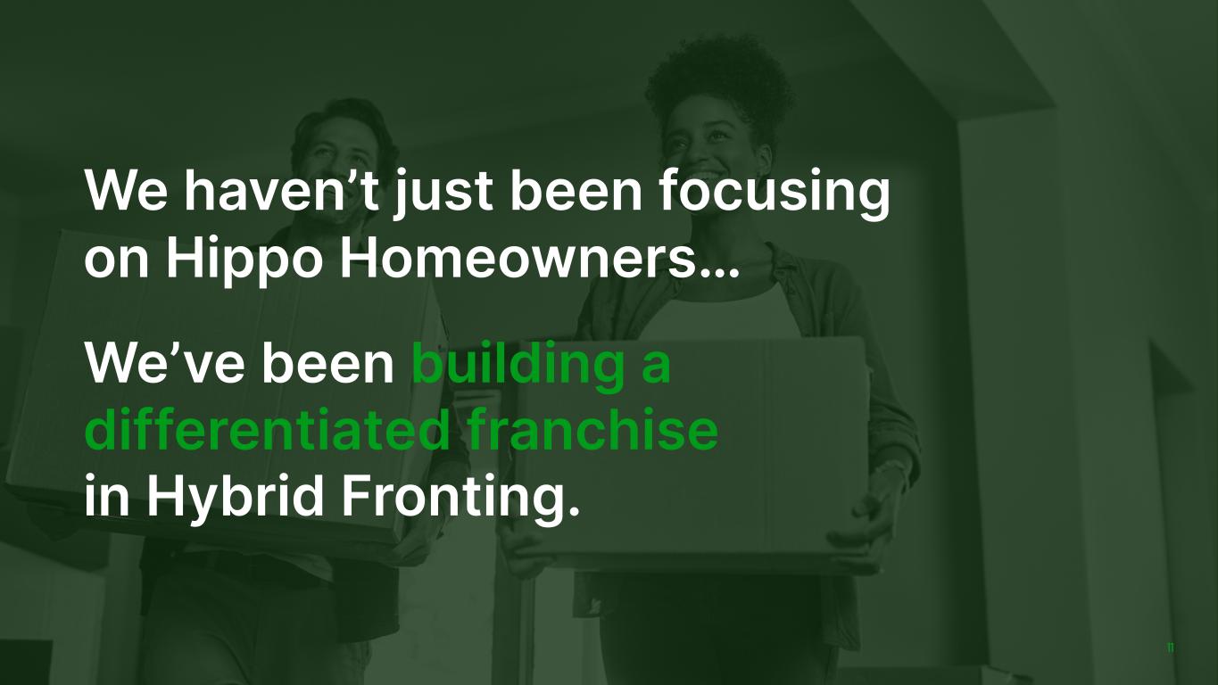 -81 -7 2022 2024 6% 69% 2022 2024 Driving A Trajectory of Profitable Growth at Hippo Home Insurance INVESTOR DAY 2025 10 We are rapidly increasing net earned premiums while reducing our loss ratio and driving profitability 73% 56% 34% 19% 2022 2024 HHIP Underwriting Profit before Overhead1 $ Million HHIP Gross Loss Ratio excluding PAY Reserve Release (% of total) HHIP Net Earned Premium % of Gross Earned Premium (% of total) Non-PCS PCS 1. Underwriting profit is defined as revenue excluding NII less loss and lae and insurance related expense