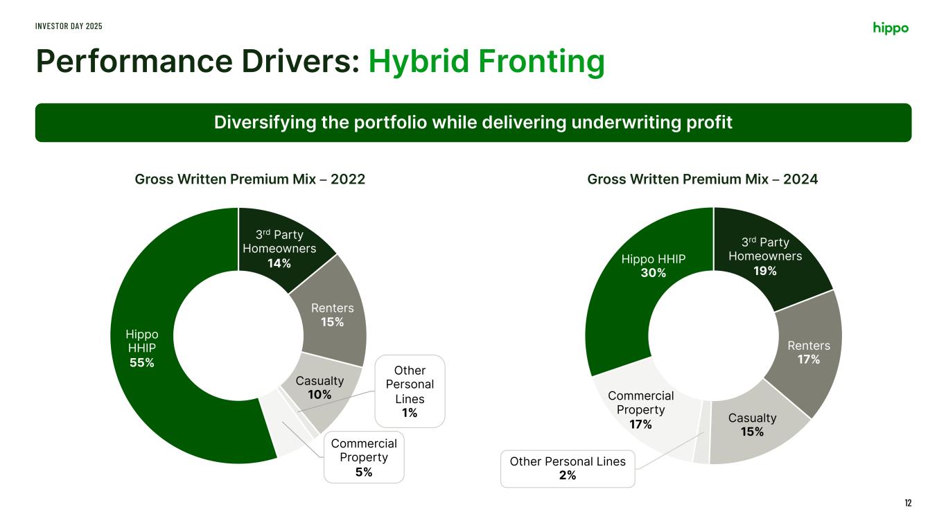 INVESTOR DAY 2025 We haven’t just been focusing on Hippo Homeowners… We’ve been building a differentiated franchise in Hybrid Fronting. 11