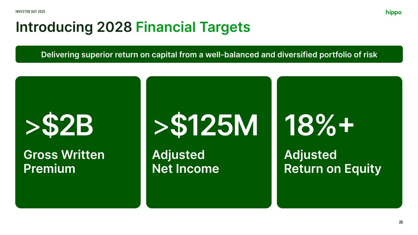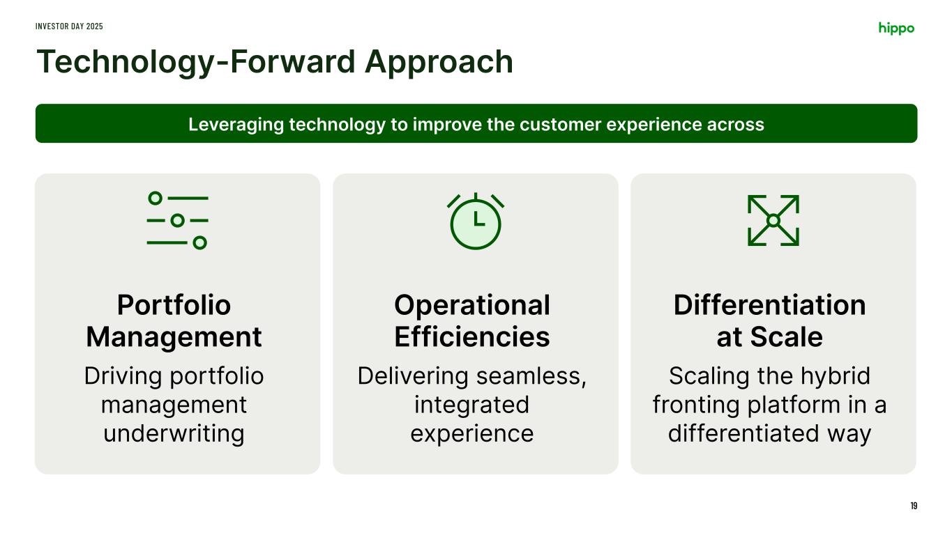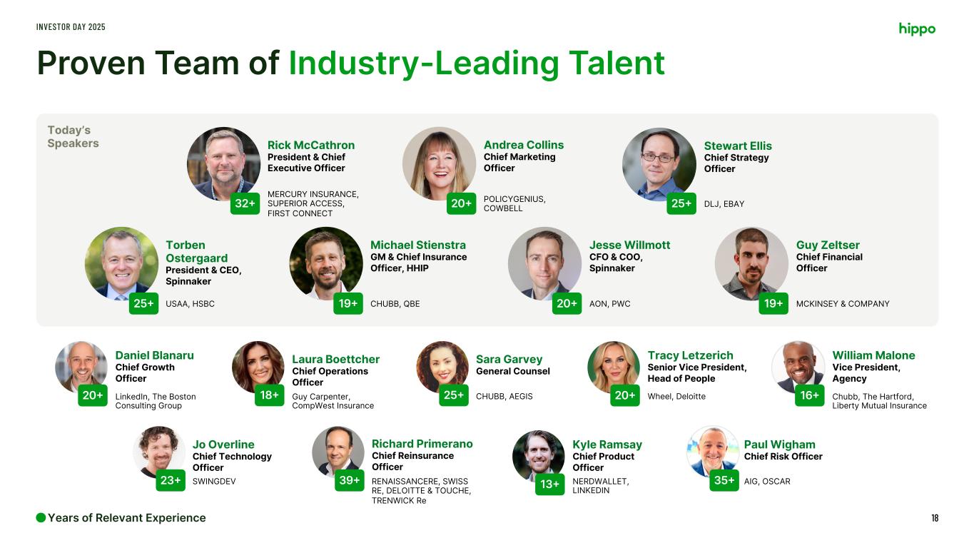 …Well-Positioned To Achieve Long-Term Vision INVESTOR DAY 2025 17OwnedNon-owned Differentiated Spinnaker platform Disciplined Approach to Portfolio and Risk Management Hippo Homeowners Insurance Program Renters Commercial Property Casualty Non-Hippo Homeowners Other Potential Acquisitions World Class Team Tech- Forward Thinking Poised to deliver a superior return on capital from a well- balanced portfolio of risk