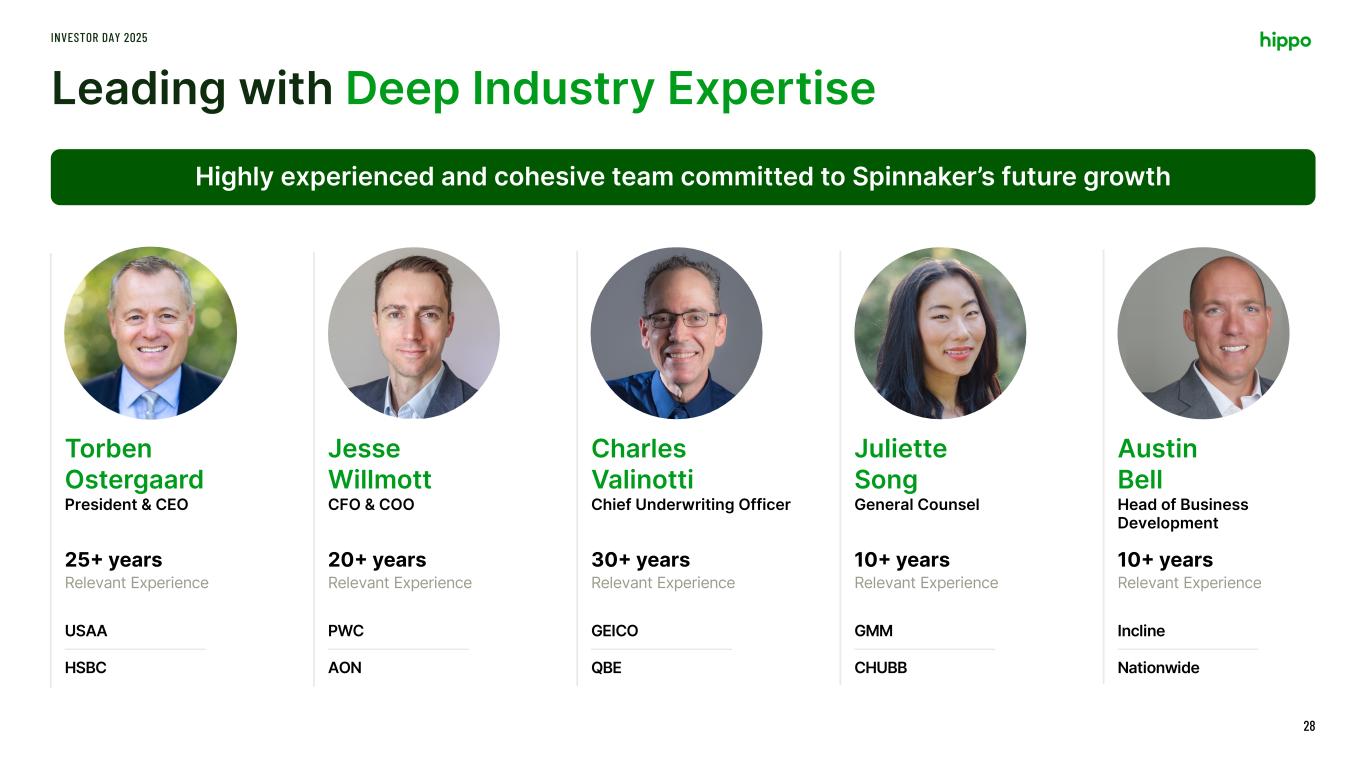 Fronting Platform of Choice for MGAs 27 Expertise Team of seasoned insurance professionals with proven ability to achieve results Risk Management Culture rooted in risk management, leveraging data and analytics to diversify and build trust Technology Advanced technology platform and integrated systems to deliver tailored solutions for customers INVESTOR DAY 2025 Trust A company built on trusted partnerships, financial strength and operational excellence