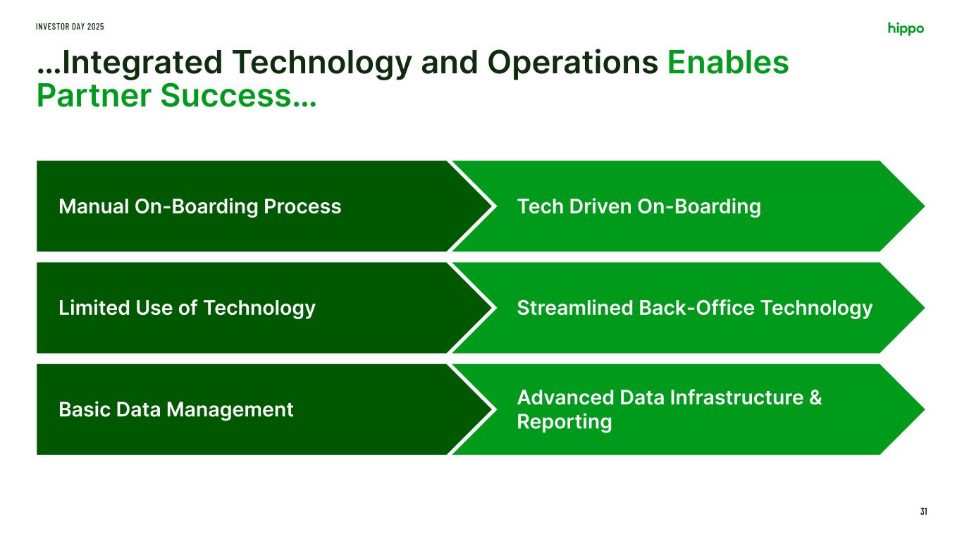 …Integrated Technology and Operations Enables Partner Success… INVESTOR DAY 2025 31 Tech Driven On-BoardingManual On-Boarding Process Streamlined Back-Office TechnologyLimited Use of Technology Advanced Data Infrastructure & ReportingBasic Data Management