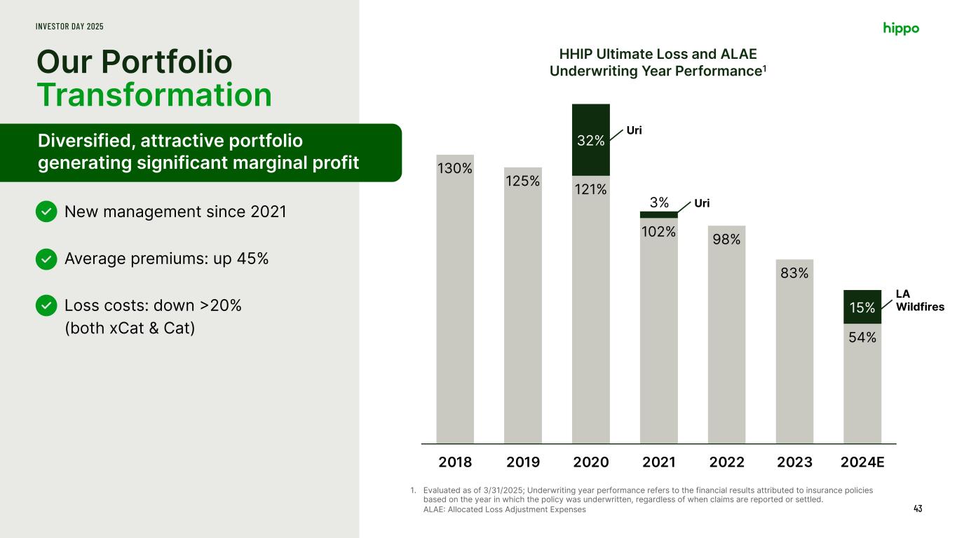 INVESTOR DAY 2025 Since 2022, we have achieved better risk-based pricing while reducing our loss ratio, driving higher profits. 42