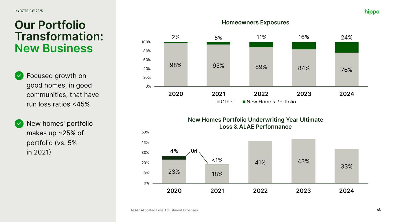 Our Portfolio Transformation: Coverage Offerings INVESTOR DAY 2025 45 Deductible, roof payment schedules & others requirements change based on factors Non-renewals where necessary Highest risk areas have highest cost sharing with customer 50.0 -17.0 -7.3 25.8 -9.5 -6.3 10.0 With 2023 PIF, T&C 2024 PIF 2024 T&C Q2 Mid - 2024 PIF, T&C 2025 PIF 2025 T&C With 2025 PIF, T&C Q2’24 CAT What-If $ Million With 2023 PIF, T&C 2024 PIF 2024 T&C Q2 Mid – 2024 PIF, T&C 2025 PIF 2025 T&C With 2025 PIF, T&C