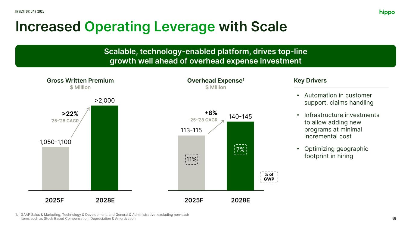 Similar Premium Retention And Net Loss Ratio Resulting In Doubling Underwriting Profit By 2028 INVESTOR DAY 2025 65 Maintaining underwriting performance & retention will nearly double underwriting profit by 2028 Net Loss RatioGross Written Premium Retention Underwriting Profit before Overhead ~2x $120-$125M >$220M 42% 62-64% 60-65% 40-45% 2Q-4Q’25 2028E Annualized 2Q-4Q’25 2028E Annualized Underwriting profit is defined as revenue excluding NII less loss and lae and insurance related expense