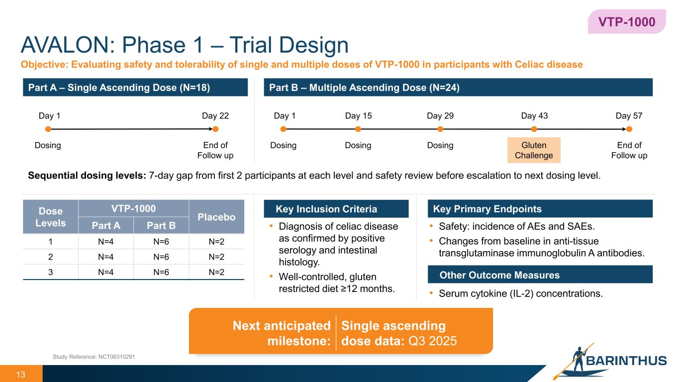 -セリアック病に対する高分化免疫療法(VTP-1000)が臨床に導入され、2025年第3四半期にAVALON社から第1相単回昇降投与が発表される予定;