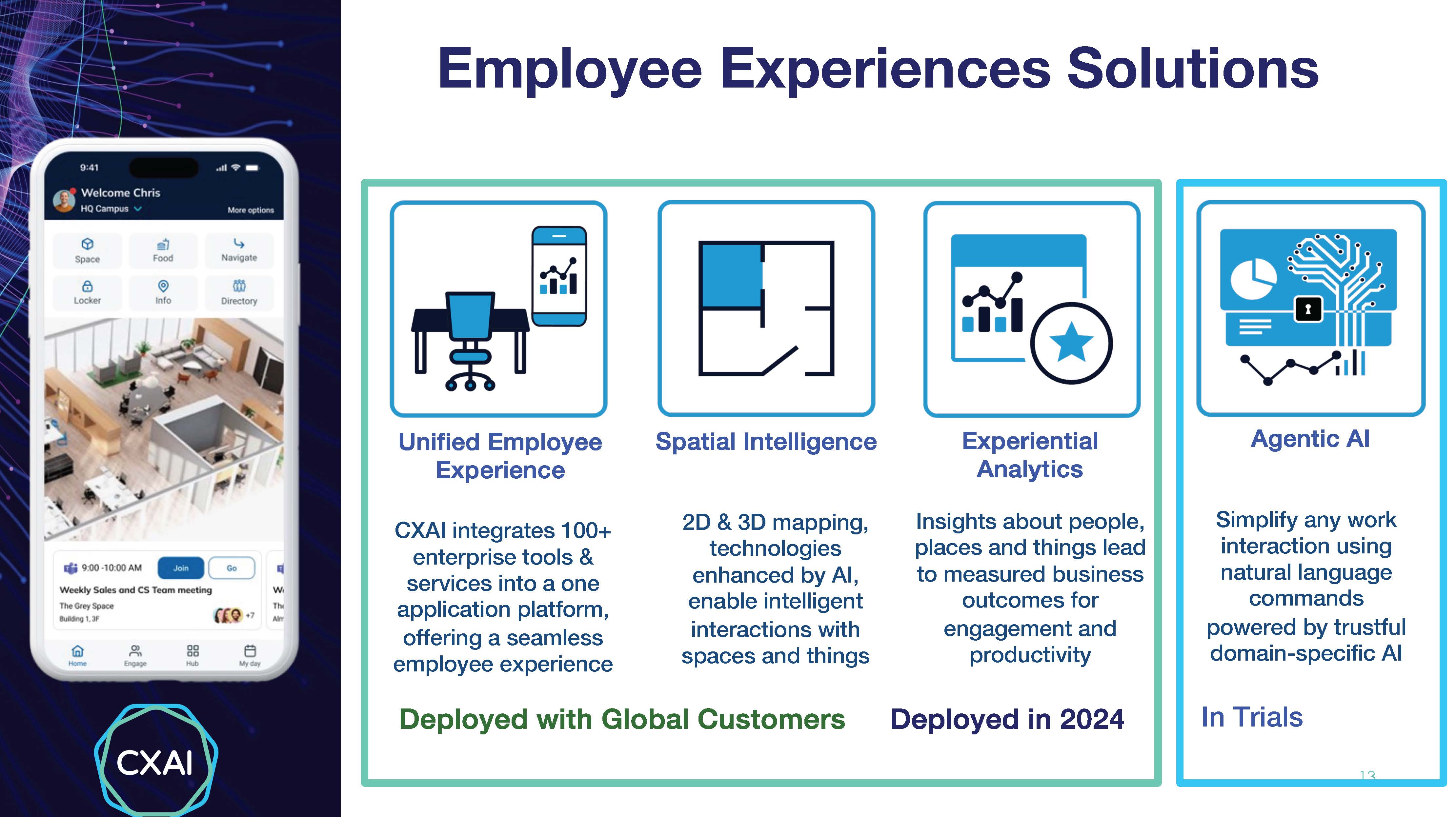 クラム・シーク会長兼最高経営責任者(CEO)は、「Agentic AIは従業員の経験を変革するものであり、2024年は当社にとって事業面でも製品面でも変革の年となりました。カスタマー・エクスペリエンス(CX)と人工知能(AI)を軸とするCXAIプラットフォームは、パンデミック後の業界最大の問題であるRTO(Return to Office)と従業員エンゲージメントを解決する最先端のテクノロジー・ソリューションです。私たちのチームは、単一コードベースへの製品転換を完了し、コスト構造を合理化した結果、収益性の高いCXAI 1.0アプリケーション・ビジネスを生み出しました。そして今、私たちは、従業員体験の市場全体を再構築する大きな機会を求めて、Agentic AIに投資しています」。