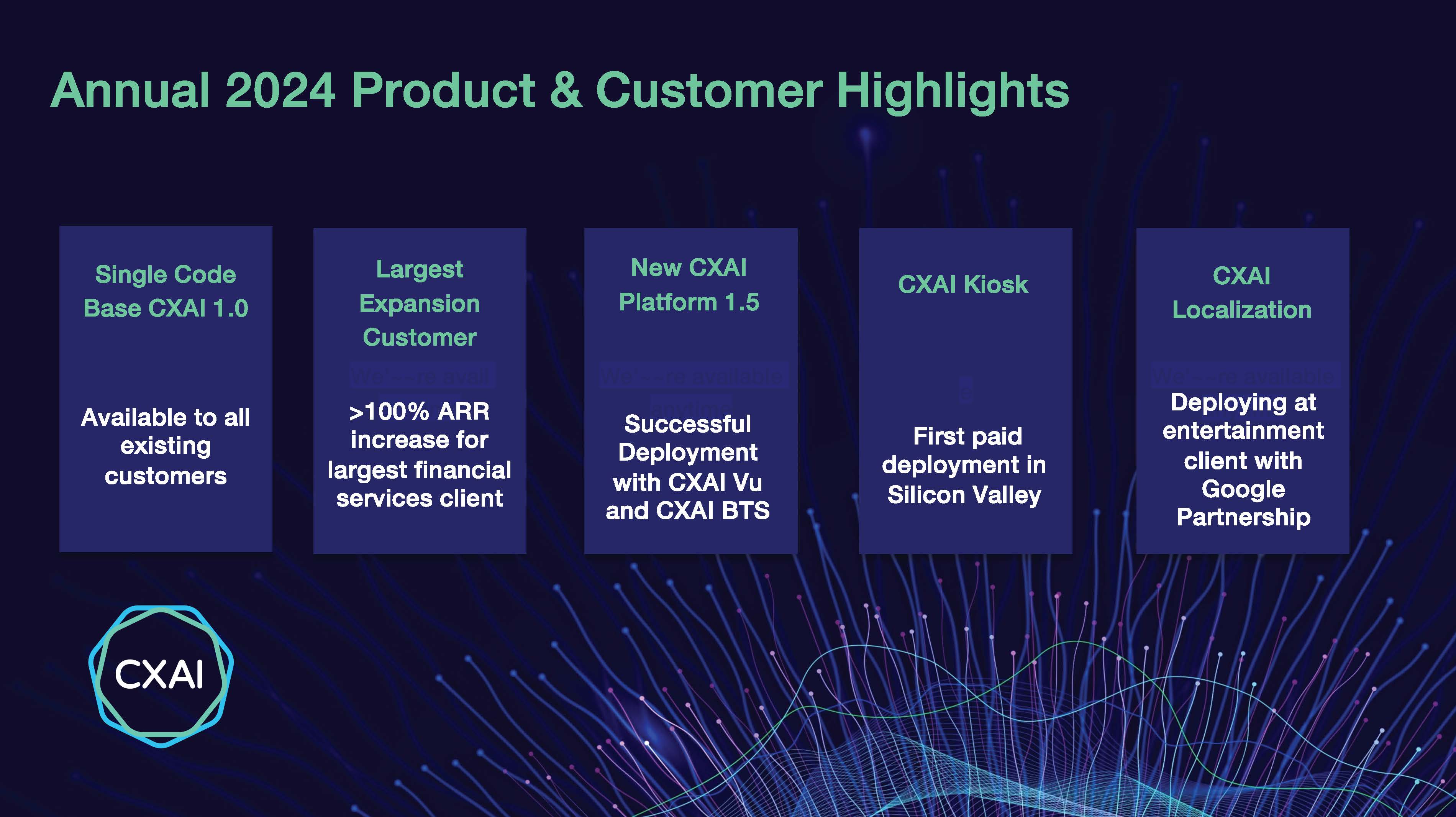 | ● | CXAI 1.0と呼ばれる単一コードベースのソリューションをすべての既存顧客に提供することに成功しました。この結果、機能アップグレードが加速され、コスト構造が大幅に最適化されました。 |